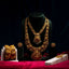 22K Yellow Gold Kasu Necklace and Temple Pendant w/ Emerald & Ruby (65.8gm)