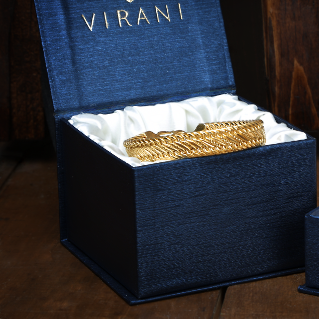 In a world where expressions of love and appreciation often transcend words, there exists a timeless and enduring choice: 22k gold jewelry from Virani Jewelers. The act of gifting gold jewelry is elevated to an art form when it involves the warm, lustrous sheen of Virani’s Indian jewelry. A metal that has symbolized luxury, refinement, and lasting beauty for centuries, our carefully curated collection of gold jewelry is a testament to the seamless blend of tradition and contemporary style. Each piece of Indian gold jewelry available for purchase on our website is meticulously crafted by skilled artisans, transcending the ordinary and offering not just an accessory, but an embodiment of affection and consideration. Whether you're celebrating a birthday, marking an anniversary, or simply expressing spontaneous affection, Virani Jewelers provides the perfect gold canvases for your sentiments.Virani Jewelers’ 22k gold jewelry holds an unmatched elegance, effortlessly enhancing any ensemble with its timeless charm. From delicately designed necklaces and chains, to bold gold bangles that make a statement, our collection caters to diverse tastes and celebratory occasions. Beyond the aesthetic appeal, our gold jewelry becomes a symbol of enduring love and affection when chosen as a gift. Each piece in our collection reflects not just the quality of craftsmanship but also a commitment to creating meaningful connections and beautiful sentiments in the form of elegant Indian gold. At Virani Jewelers, we take pride in our ability to provide luxury gold gifts for all ages, genders, and important life events. The gift of gold jewelry from Virani transcends material value; it becomes an expression of deep emotions, a token of lasting bonds that surpass time and trends.When words fall short, let the radiance of gold jewelry from Virani Jewelers speak volumes. Our collection invites you to explore and discover the perfect embodiment of love and elegance. Whether it's a classic gold chain, a dazzling pair of hoop earrings, or a statement ring, our gold jewelry is a celebration of enduring beauty, making your special moments truly unforgettable.