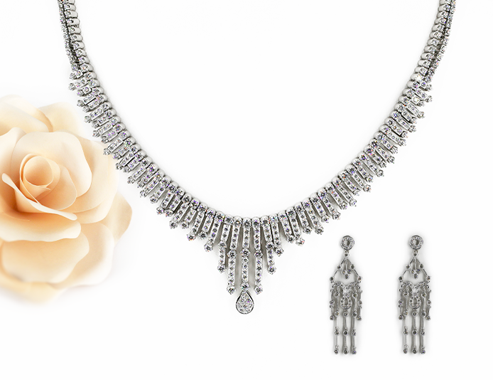 The crowning stroke to your breathtaking gown will be the brilliant pieces you choose to glisten along each detail. Explore our collection of striking necklace sets to finish the look.
