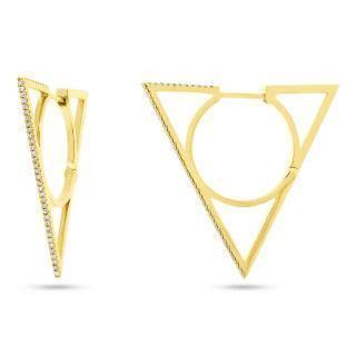 These are our modern 14k gold triangle hoop earrings with 0.21ct diamonds. They measure 1.15" in length and 1.20" in width.
