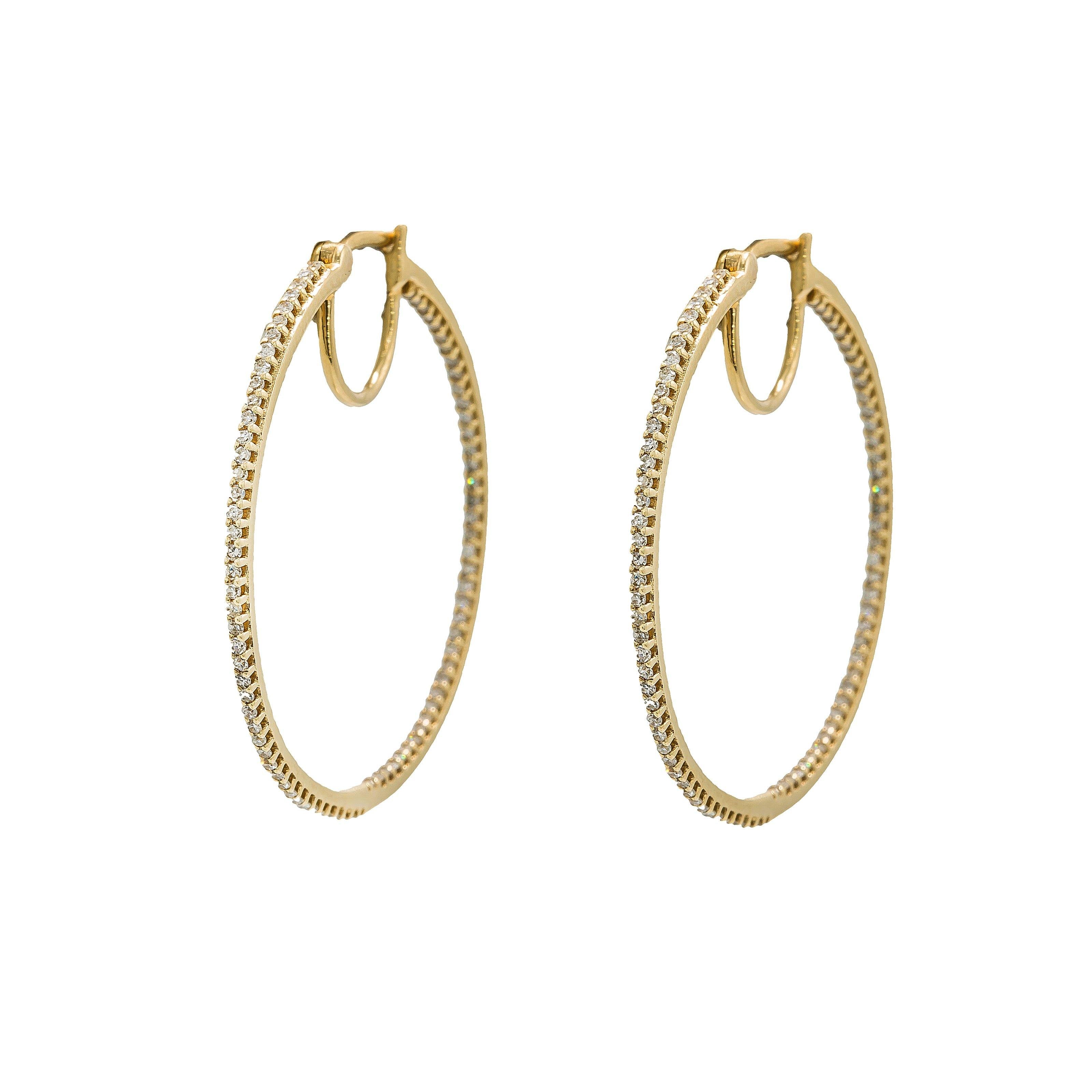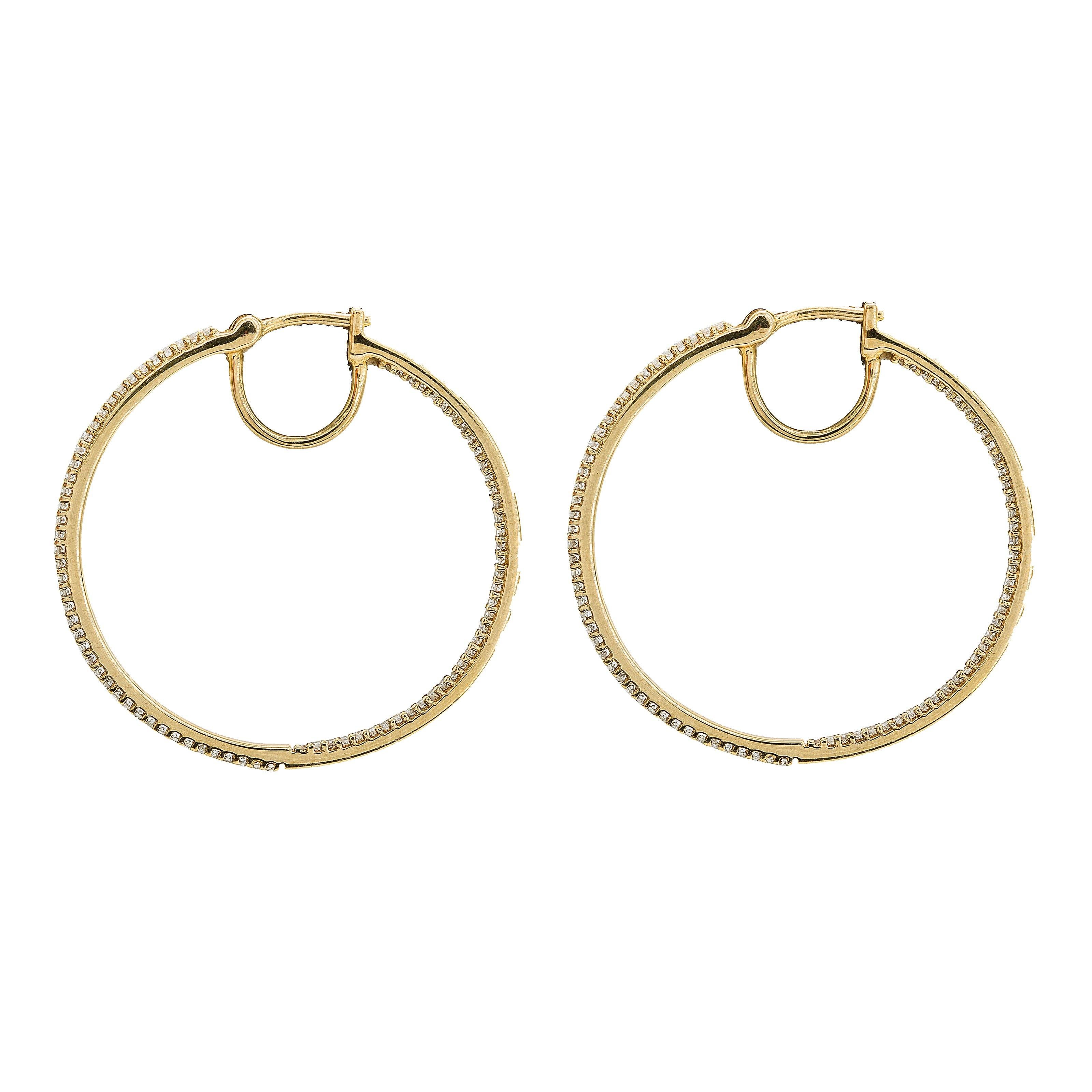 0.5CT Diamond Hoop Earrings Set In 14K Yellow Gold for women. Classic hoop earrings set with diamonds on the inside lining of the earring. Total weight is 3.9 grams. Perfect everyday earrings.