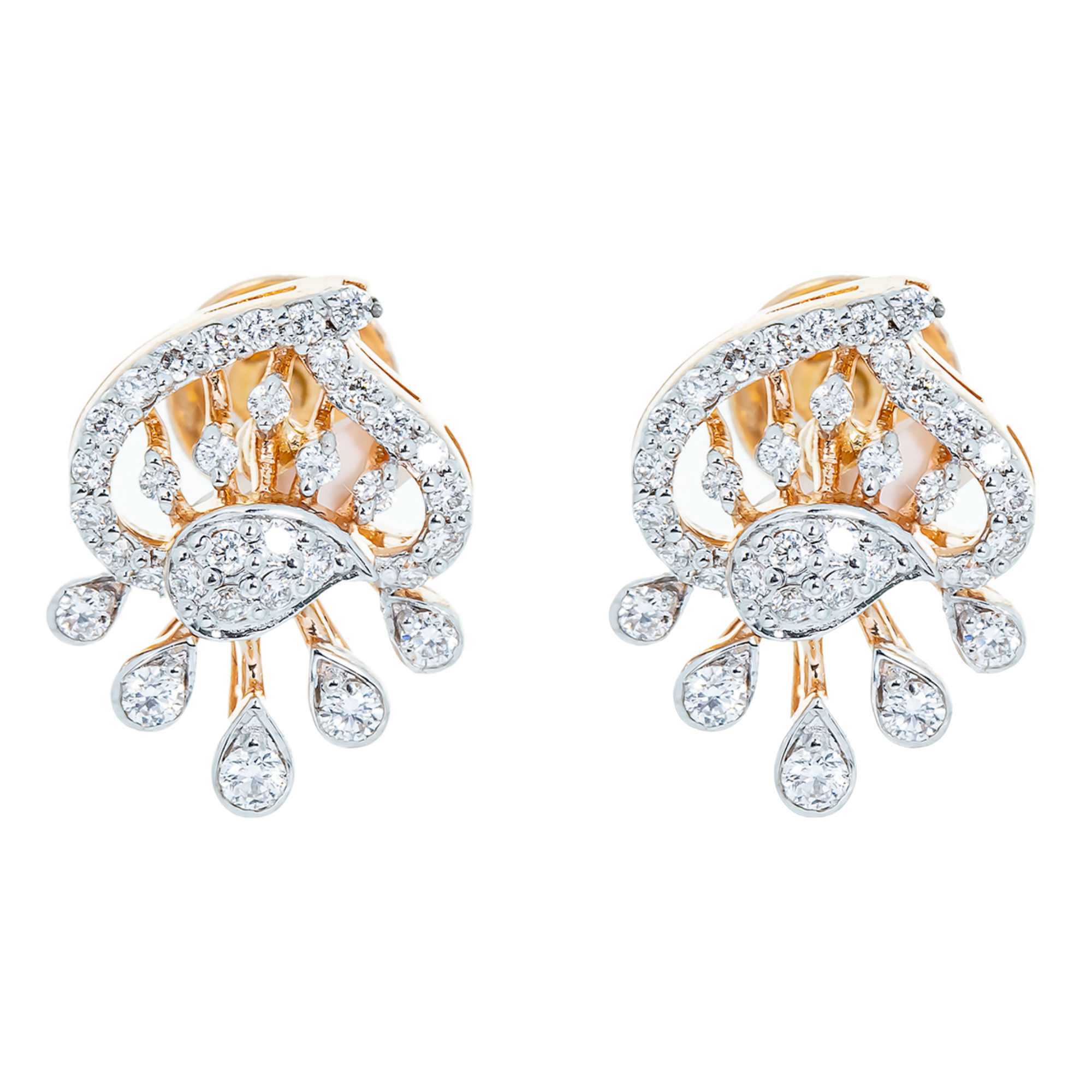 | Refined artistry defines these 18k rose gold and diamond stud earrings from Virani. Each earring features intricate patterns and radiant diamonds, offering a luminous statement of elegance. Designed for enduring wear, they reflect the exceptional craftsmanship of Virani’s diamond jewelry collection. Features • 18k rose gold • Diamond Specifications • Minimum Width - 1.5 millimeters • Maximum Width - 9.25 millimeters • Length - 0.4 inch • Weight - 2.94 grams Diamond Specifications • Carats - 0.32 • Clarity - VVS • Color - E-F • Cut - Round Brilliant |