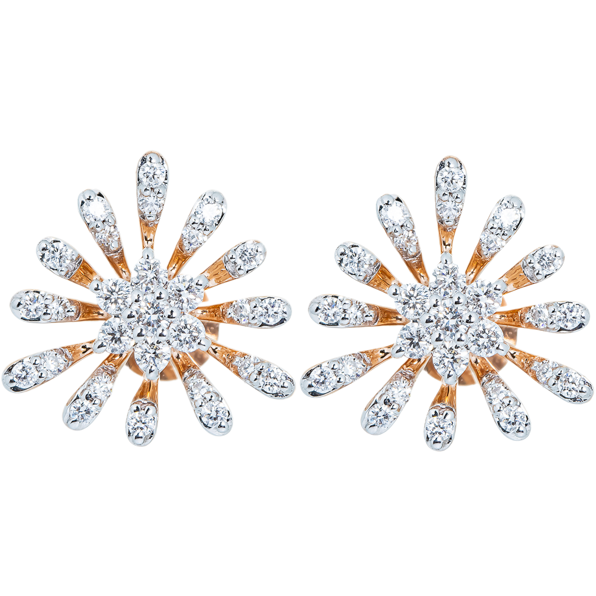 | A celebration of artistry, these 18k rose gold and diamond stud earrings from Virani feature intricate detailing and brilliant diamonds. Their elegant design balances tradition with modern grace, creating a luminous statement of style and craftsmanship in diamond jewelry. Features • 18k rose gold • Diamond Specifications • Minimum Width - 1.5 millimeters • Maximum Width - 12 millimeters • Length - 0.5 inch • Weight - 3.19 grams Diamond Specifications • Carats - 0.47 • Clarity - VVS • Color - E-F • Cut - Round Brilliant |