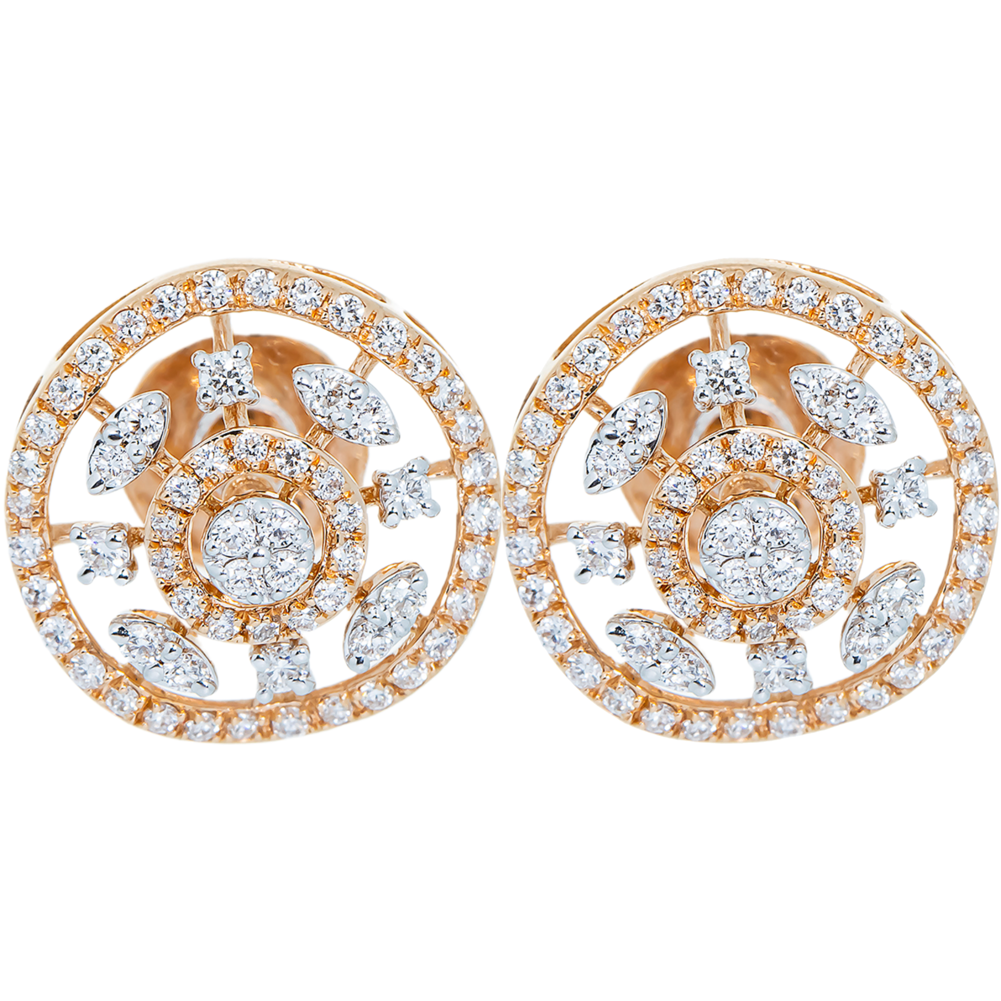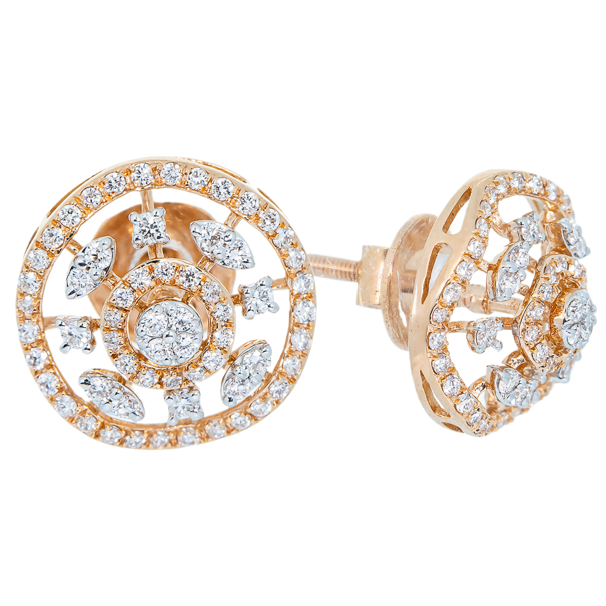 | Crafted with precision, these 18k rose gold and diamond stud earrings by Virani showcase intricate patterns that shimmer with every turn. Each diamond sparkles with clarity, offering the perfect fusion of timeless design, refined beauty, and the luxurious radiance of damond jewelry. Features • 18k rose gold • Diamond Specifications • Minimum Width - 1.5 millimeters • Maximum Width - 12.5 millimeters • Length - 0.4 inch • Weight - 3.35 grams Diamond Specifications • Carats - 0.52 • Clarity - VVS • Color - E-F • Cut - Round Brilliant |