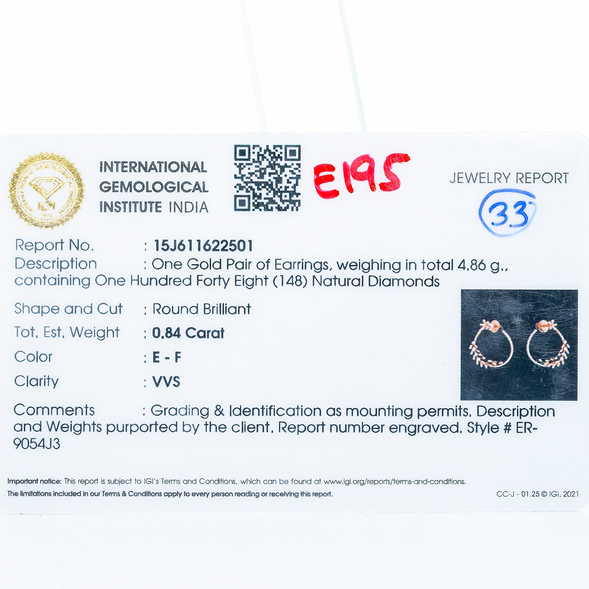 18K Rose Gold & 0.84 CT Diamond Hoops (4.86 grams)
