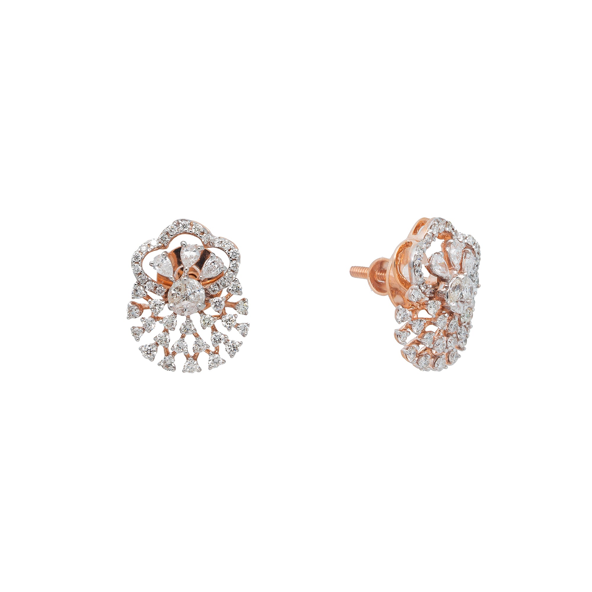 Experience the allure of our Indian jewelry with these 18k rose gold and diamond earrings from Virani Jewelers. These stunning diamond earrings showcase the intricate craftsmanship of minimal jewelry, accentuated by the timeless beauty of diamonds. The rose gold adds a touch of warmth and sophistication, making these earrings a perfect choice for those who appreciate the elegance of find gold Indian jewelry.