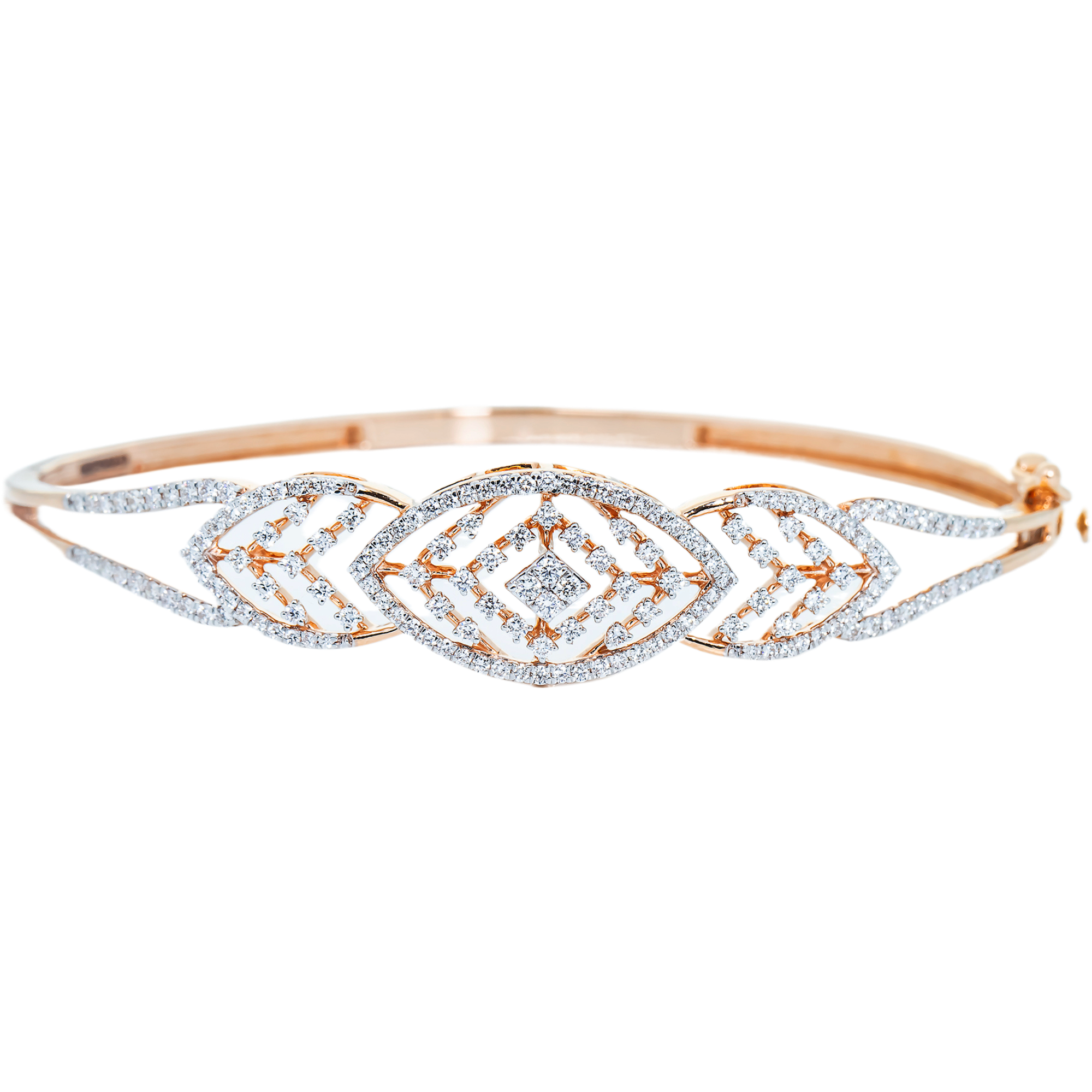 | Grace meets brilliance in this 18k rose gold and diamond bracelet by Virani. The soft pink tone of rose gold accentuates the diamonds’ allure, creating a captivating contrast. Designed for everyday elegance and special occasions alike, it embodies the sophistication of Virani’s diamond Indian jewelry collection. Features • 18k rose gold • Diamond Specifications • Minimum Width - 2.75 millimeters • Maximum Width - 12.5 millimeters • Length - 2 inches • Weight - 12.12 grams Diamond Specifications • Carats - 1.09 • Clarity - VVS • Color - E-F • Cut - Round Brilliant |