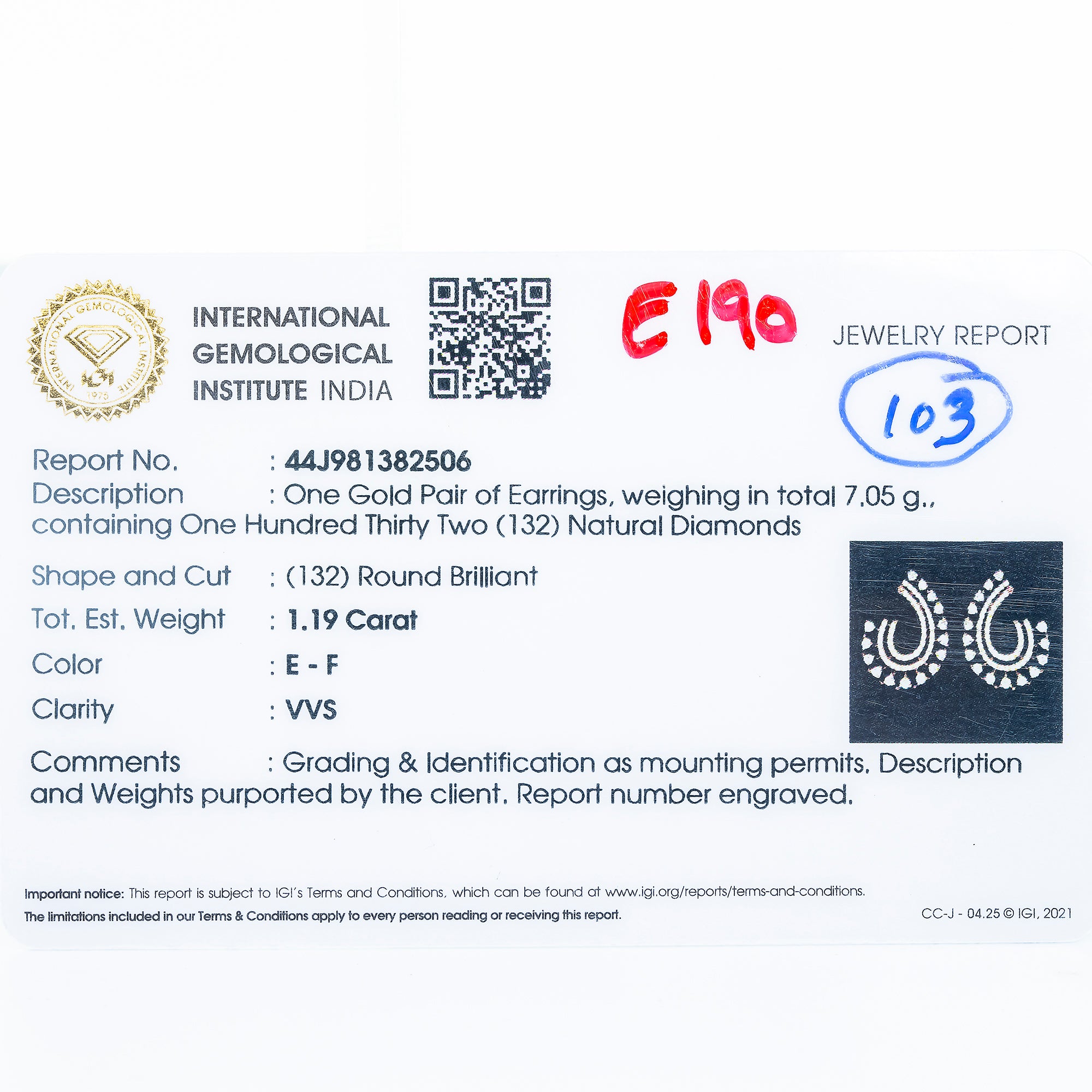 18K Rose Gold & 1.19 CT Diamond Hoops (7.05 grams)