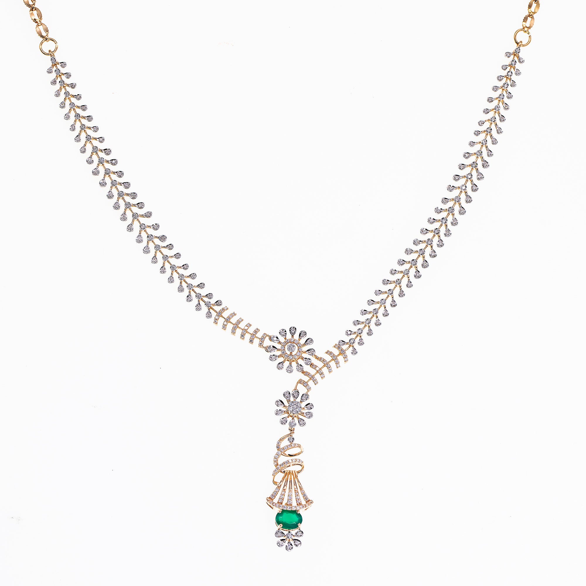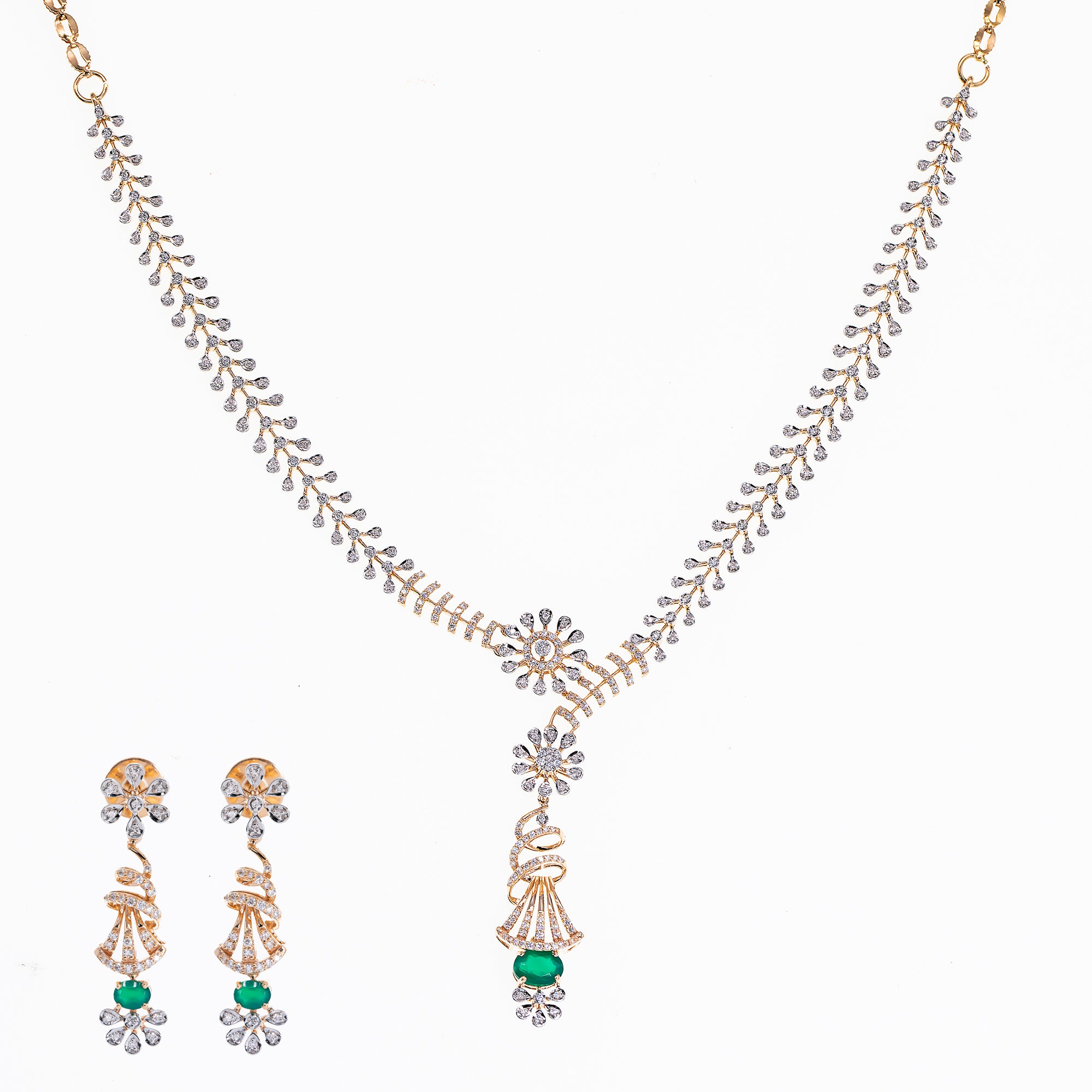 18K Rose Gold, Emerald & 1.3 CT Diamond Necklace Set (21.7 grams)