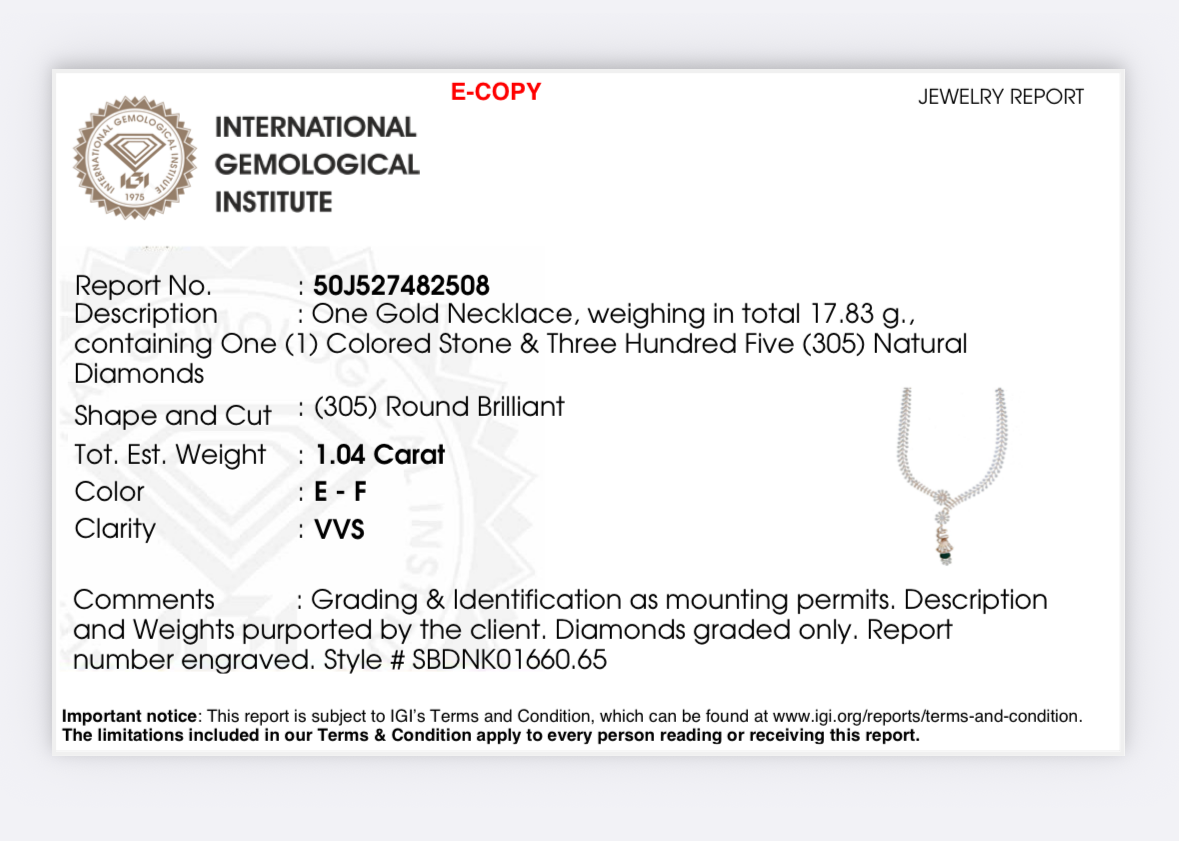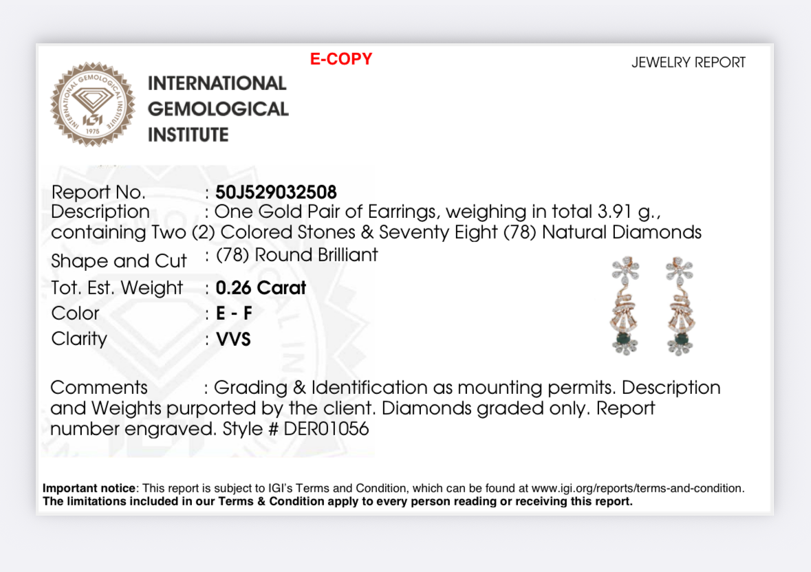 | Make every moment unforgettable with this 18k rose gold and diamond necklace and earring set with emeralds by Virani Jewelers. Crafted with exquisite detail, the Indian jewelry design enhances the natural beauty of each diamond and emerald, resulting in a breathtaking expression of grace. Perfect for special occasions or cherished keepsakes, this diamond jewelry set reflects Virani’s dedication to creating Indian jewelry that inspires and endures. Features • 18k rose gold • Diamond • Emerald Necklace Specifications • Minimum Width - 3 millimeters • Maximum Width - 12 millimeters • Length - 20 inches Earring Specifications • Minimum Width - 1.5 millimeters • Maximum Width - 7.5 millimeters • Length - 1 inch Diamond Specifications • Carats - 1.3 • Clarity - VVS • Color - E-F • Cut - Round Brilliant This diamond neclace and earring set has a combined weight of 21.7 grams. |