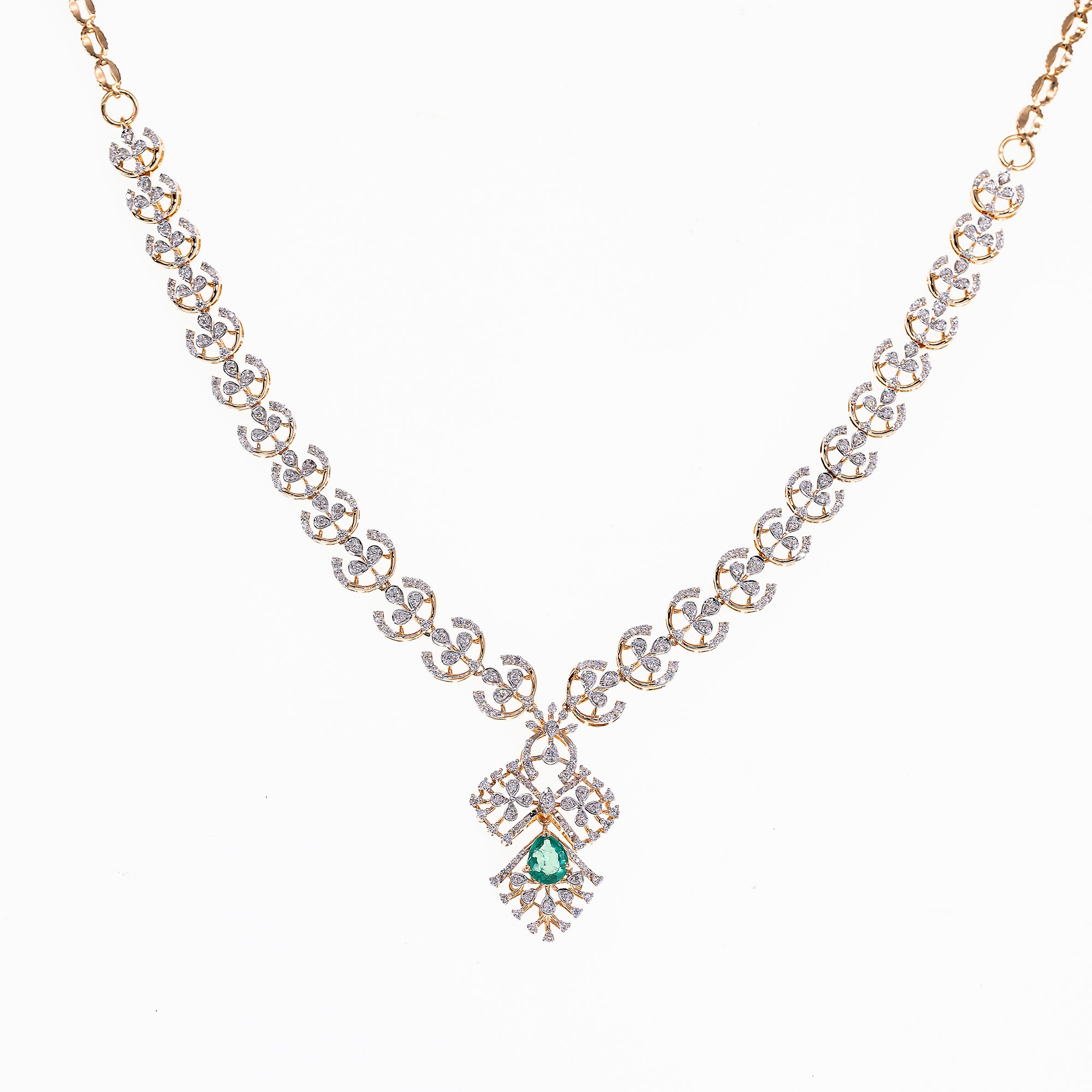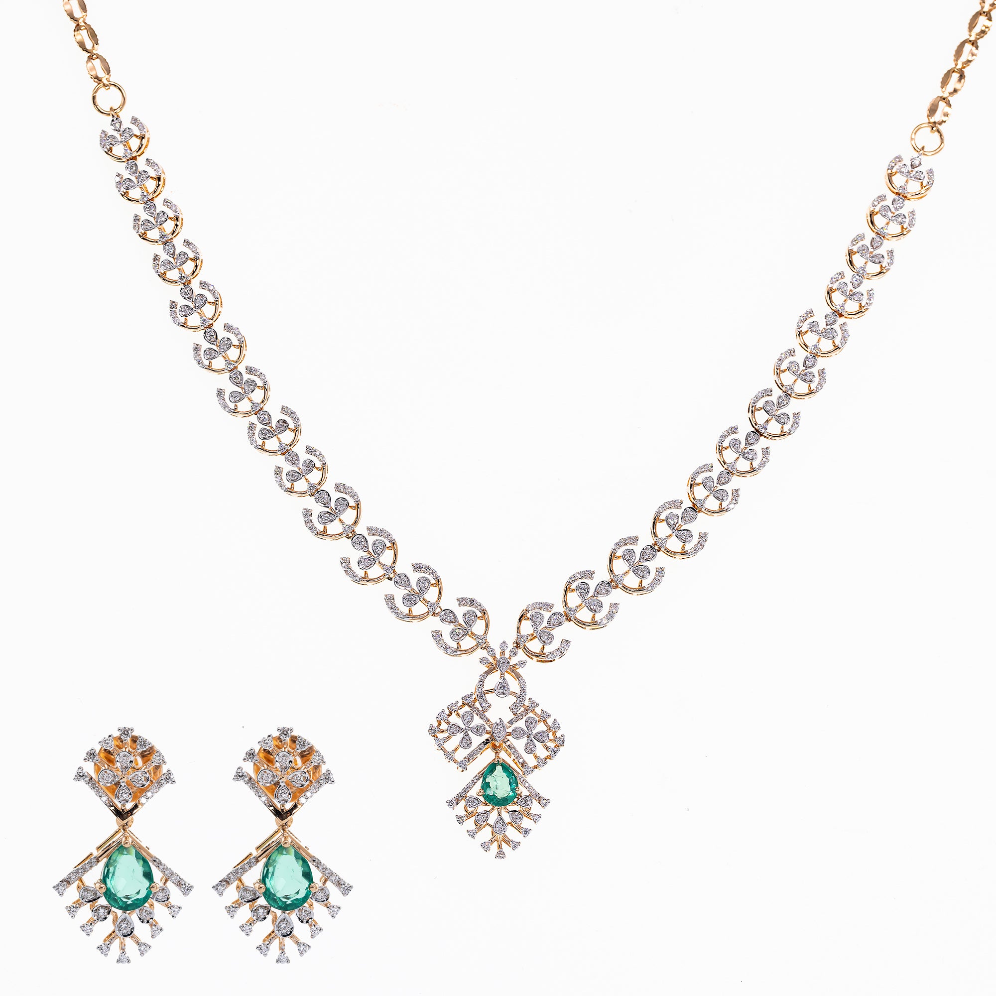 18K Rose Gold, Emerald & 1.75 CT Diamond Necklace Set (20.48 grams)