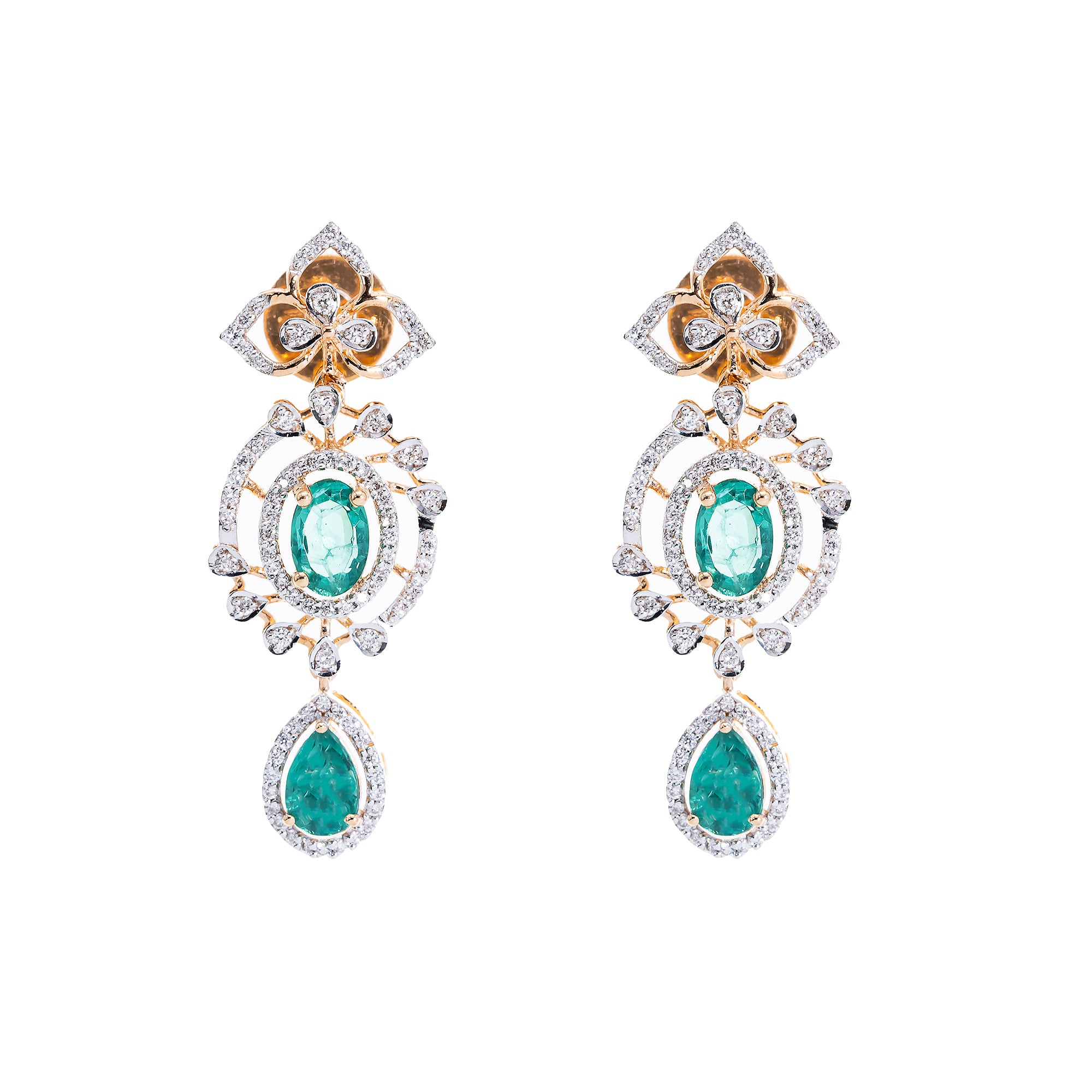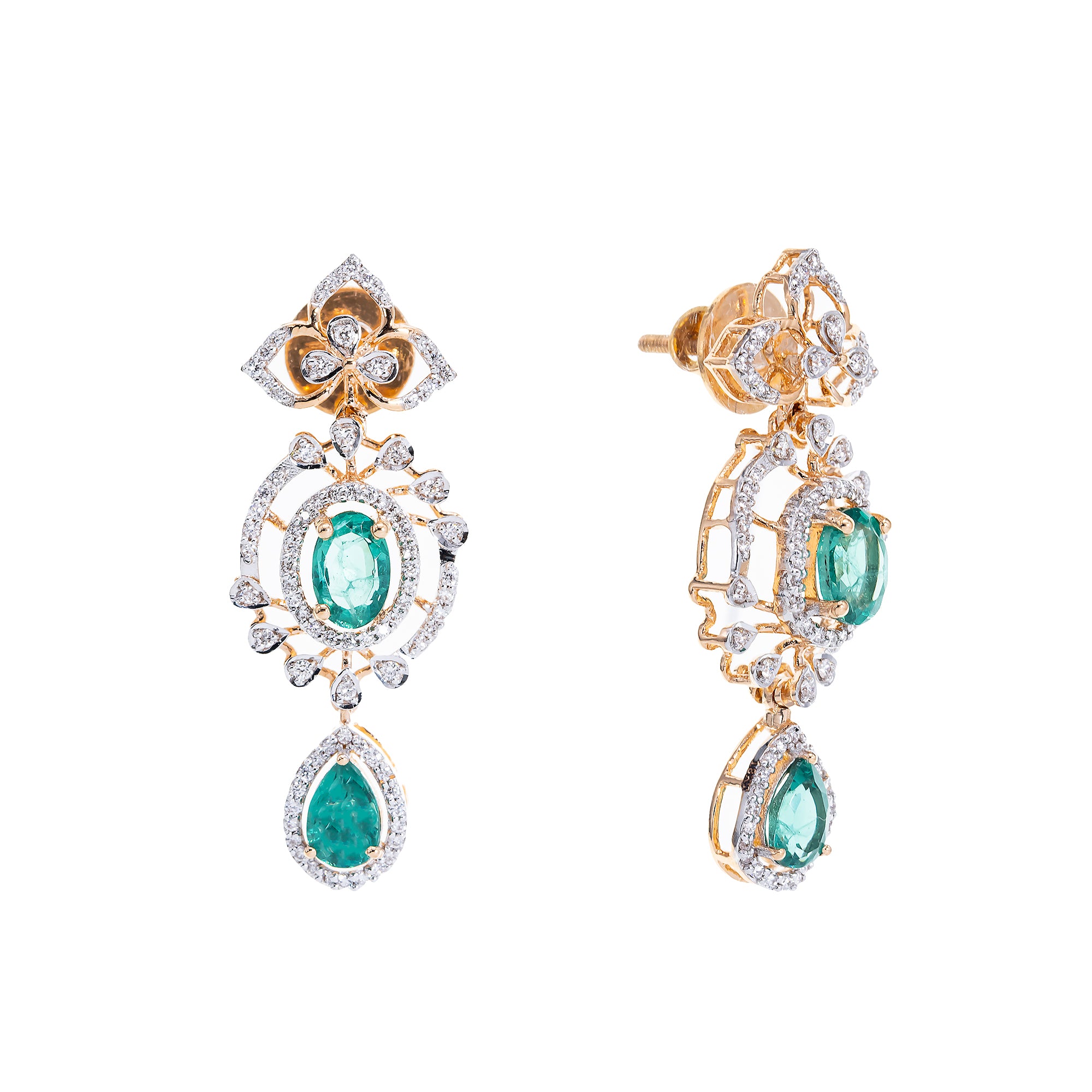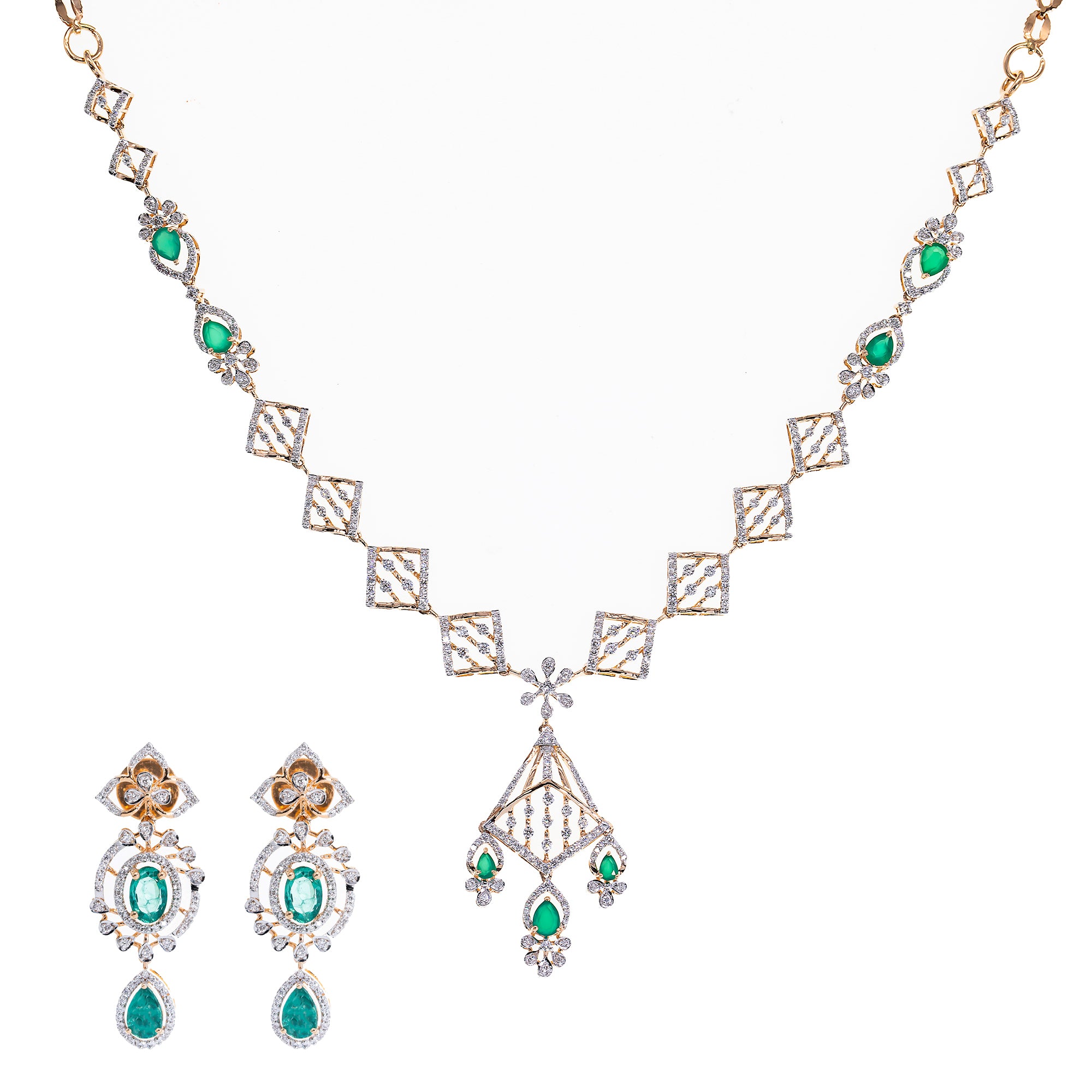 18K Rose Gold, Emerald & 1.97 CT Diamond Necklace Set (18.13 grams)