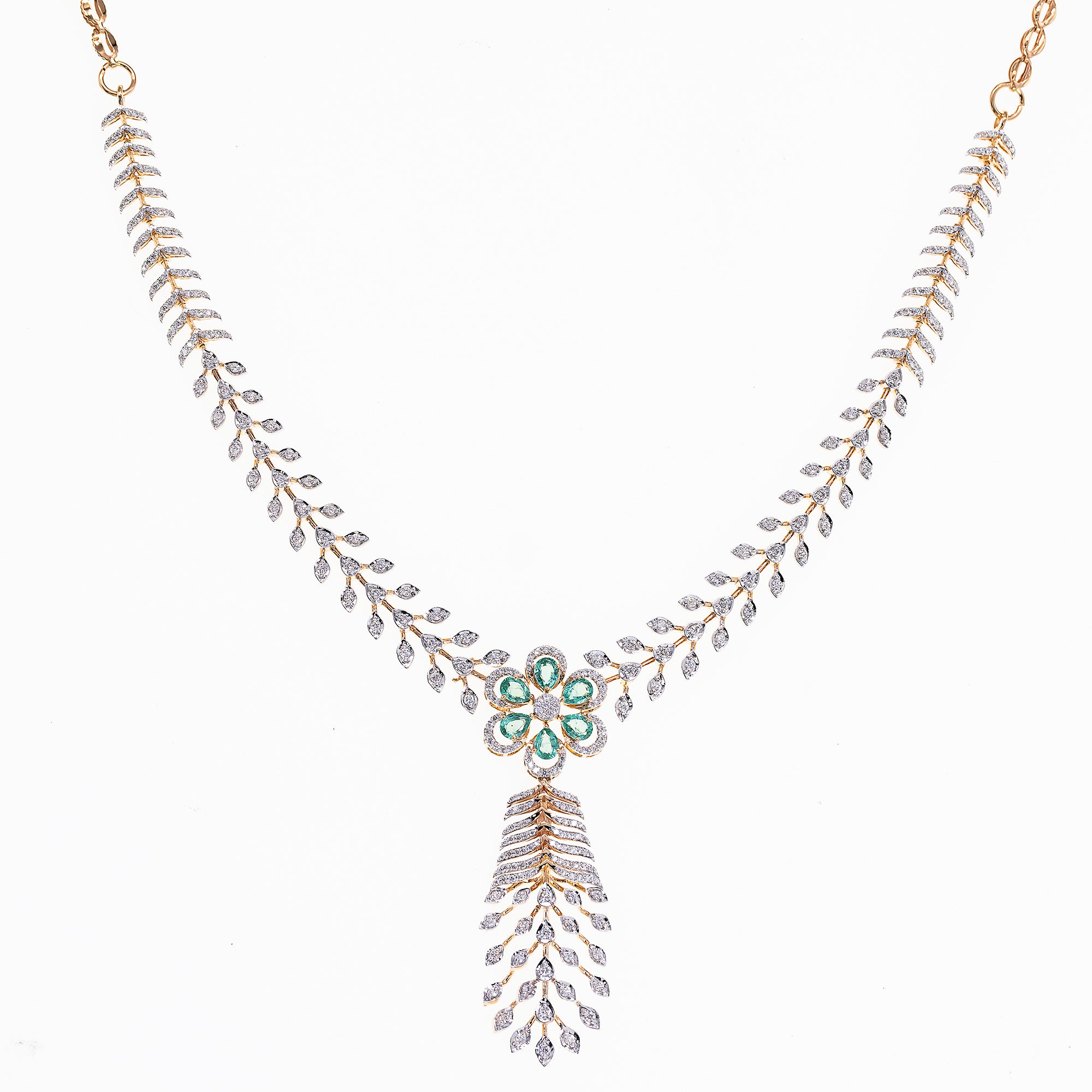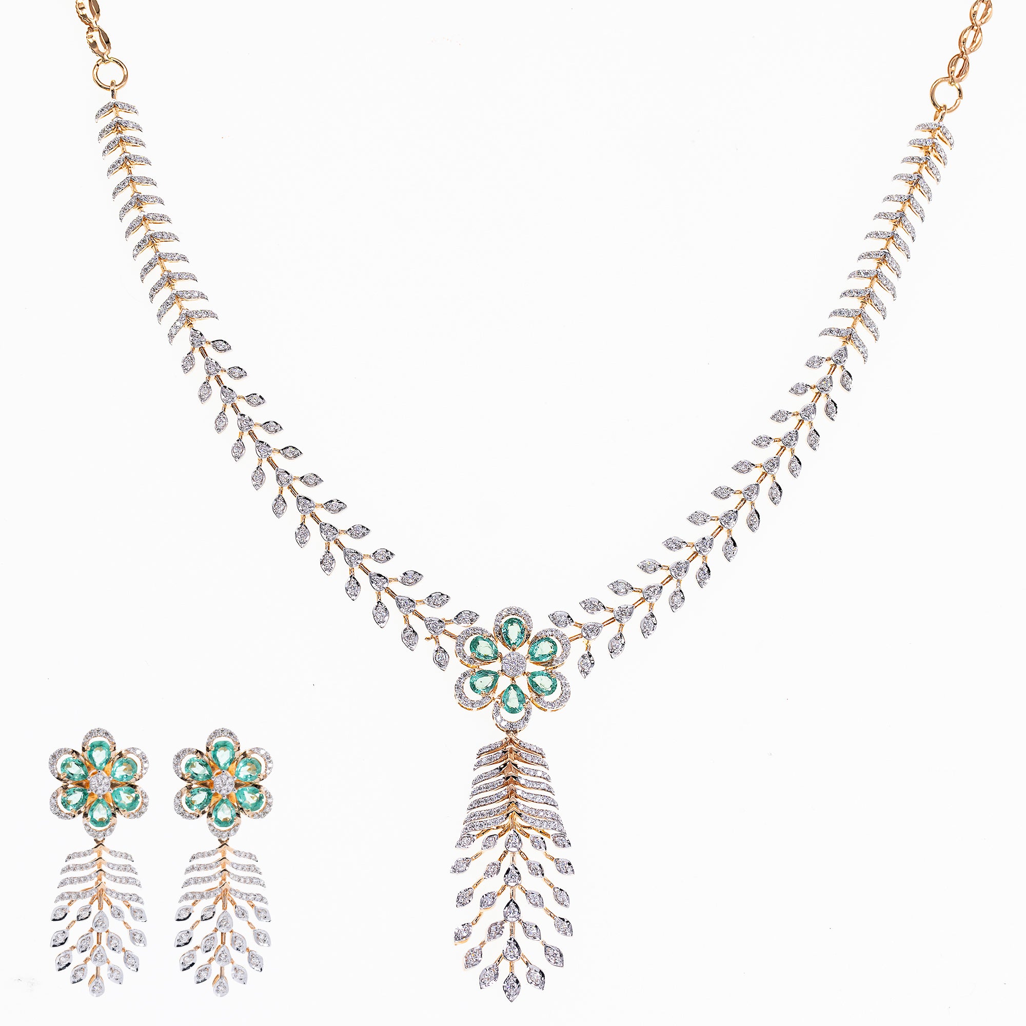 18K Rose Gold, Emerald & 2.07 CT Diamond Necklace Set (29.89 grams)