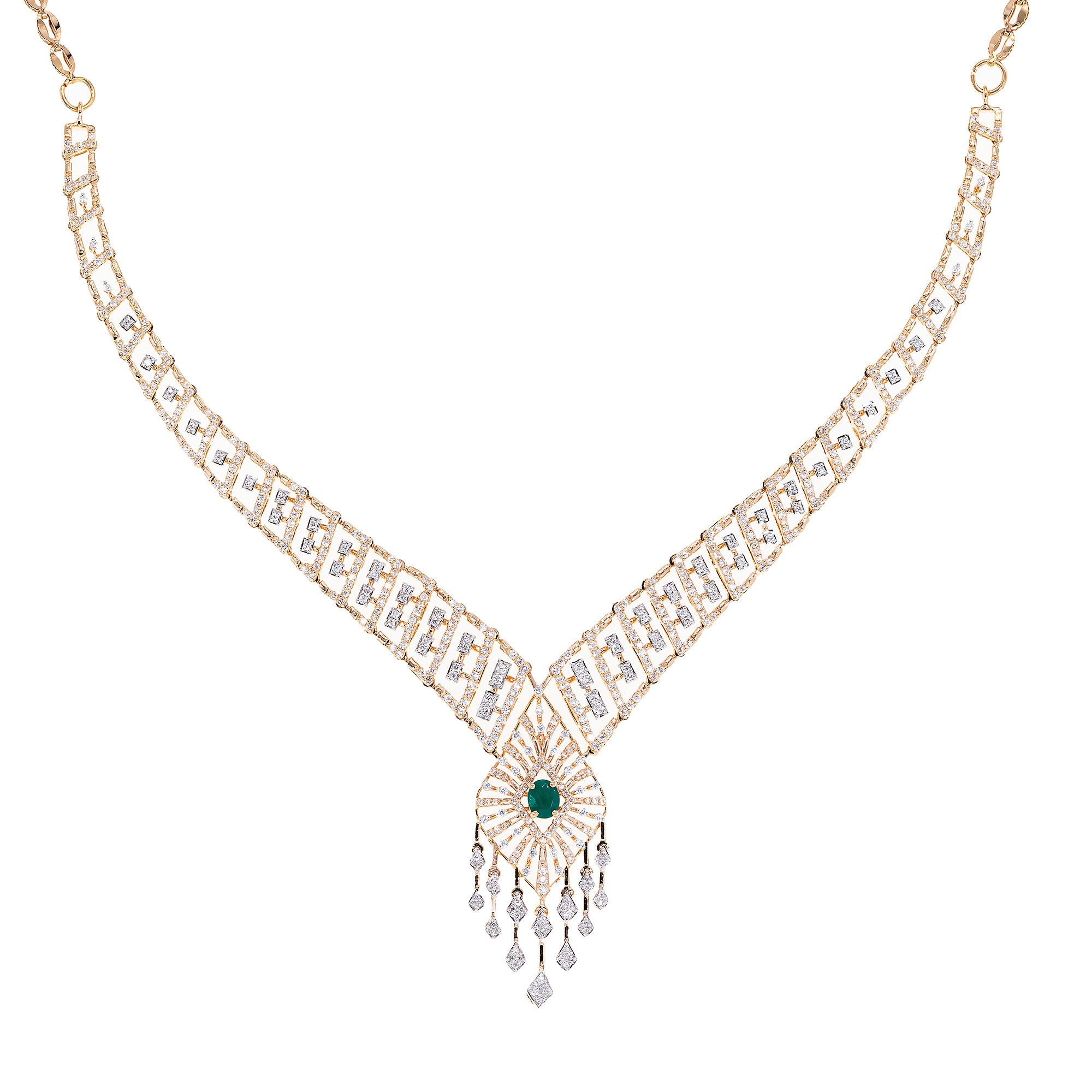 18K Rose Gold, Emerald & 2.3 CT Diamond Necklace (19.5 grams)
