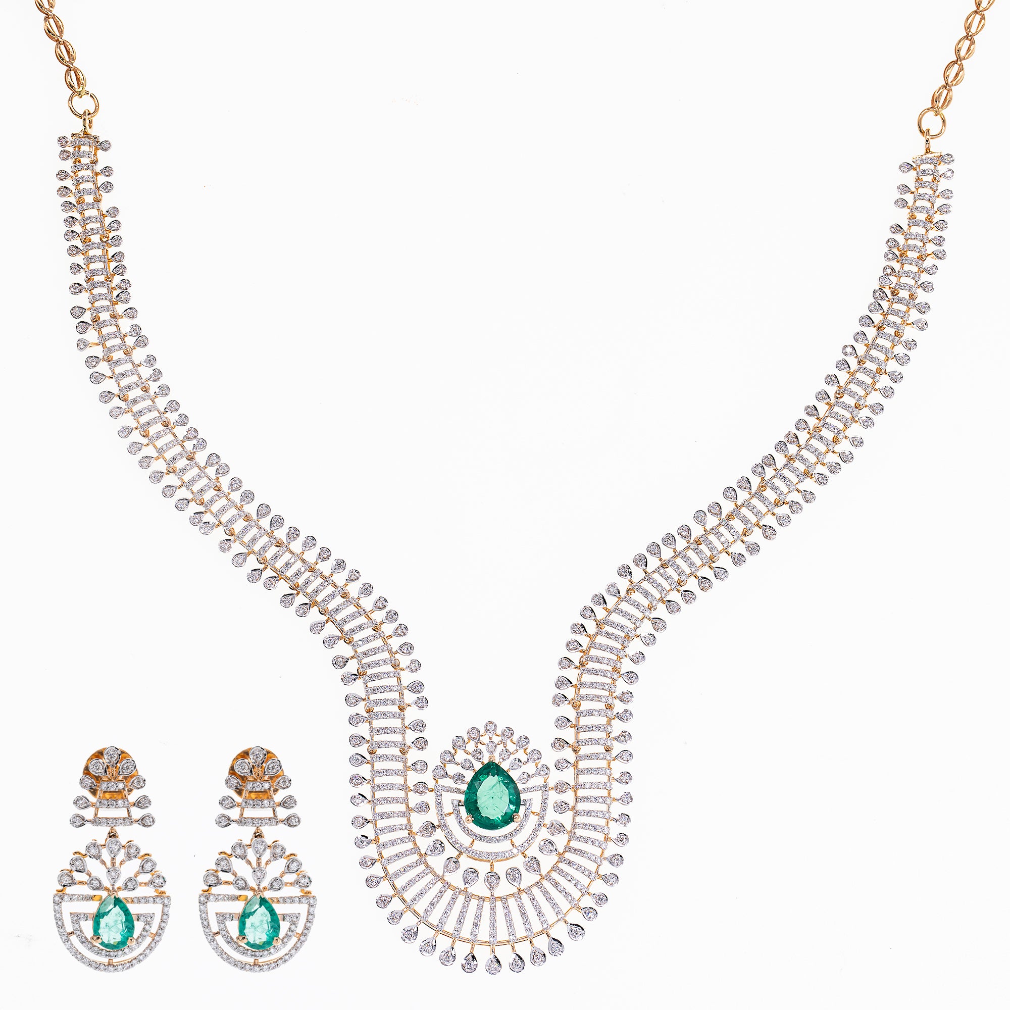 18K Rose Gold, Emerald & 3.9 CT Diamond Necklace Set (35.16 grams)