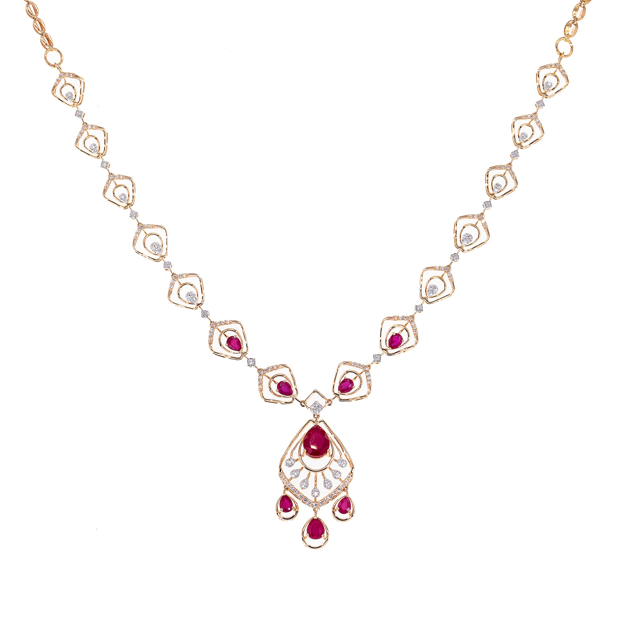 18K Rose Gold, Ruby & 0.62 CT Diamond Necklace (13.33 grams)