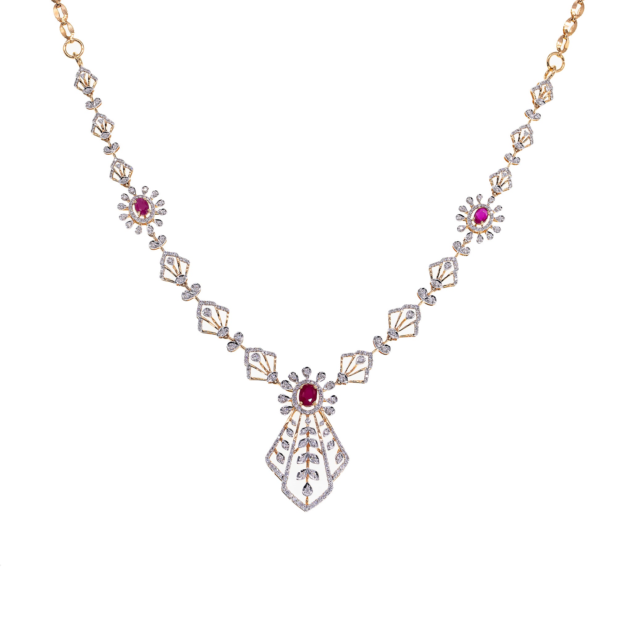 18K Rose Gold, Ruby & 1.06 CT Diamond Necklace Set (13.16 grams)