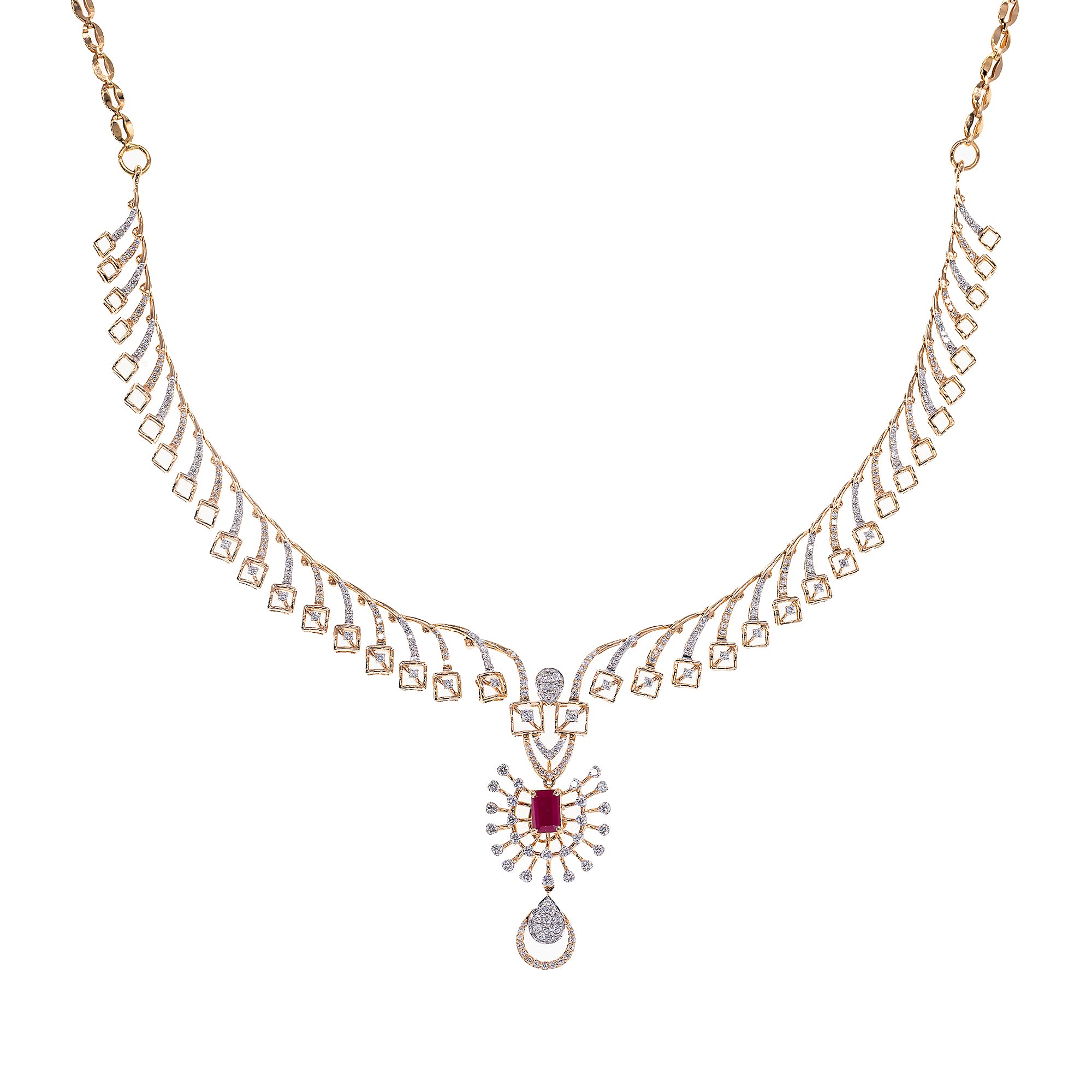 18K Rose Gold, Ruby & 1.44 CT Diamond Necklace Set (20.35 grams)
