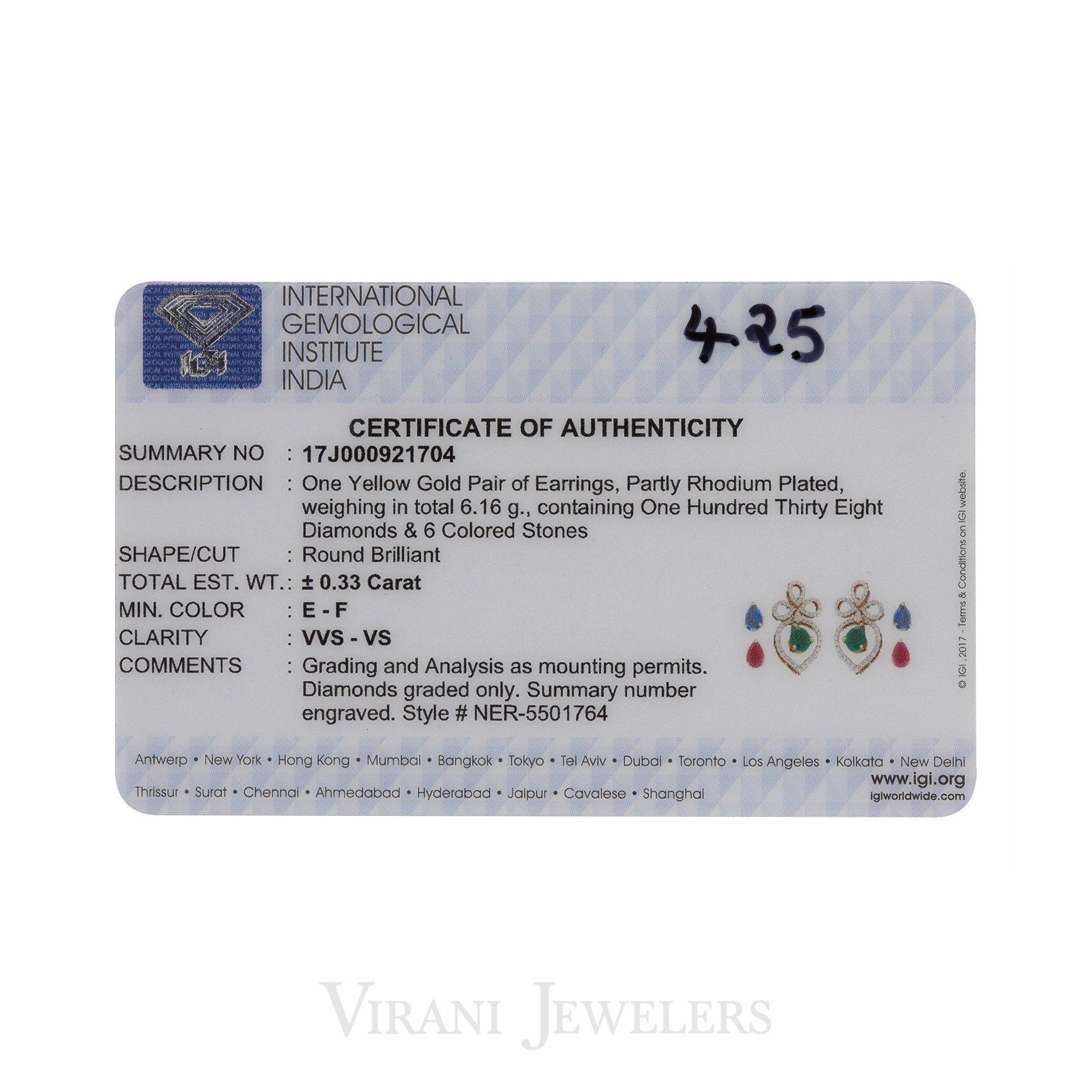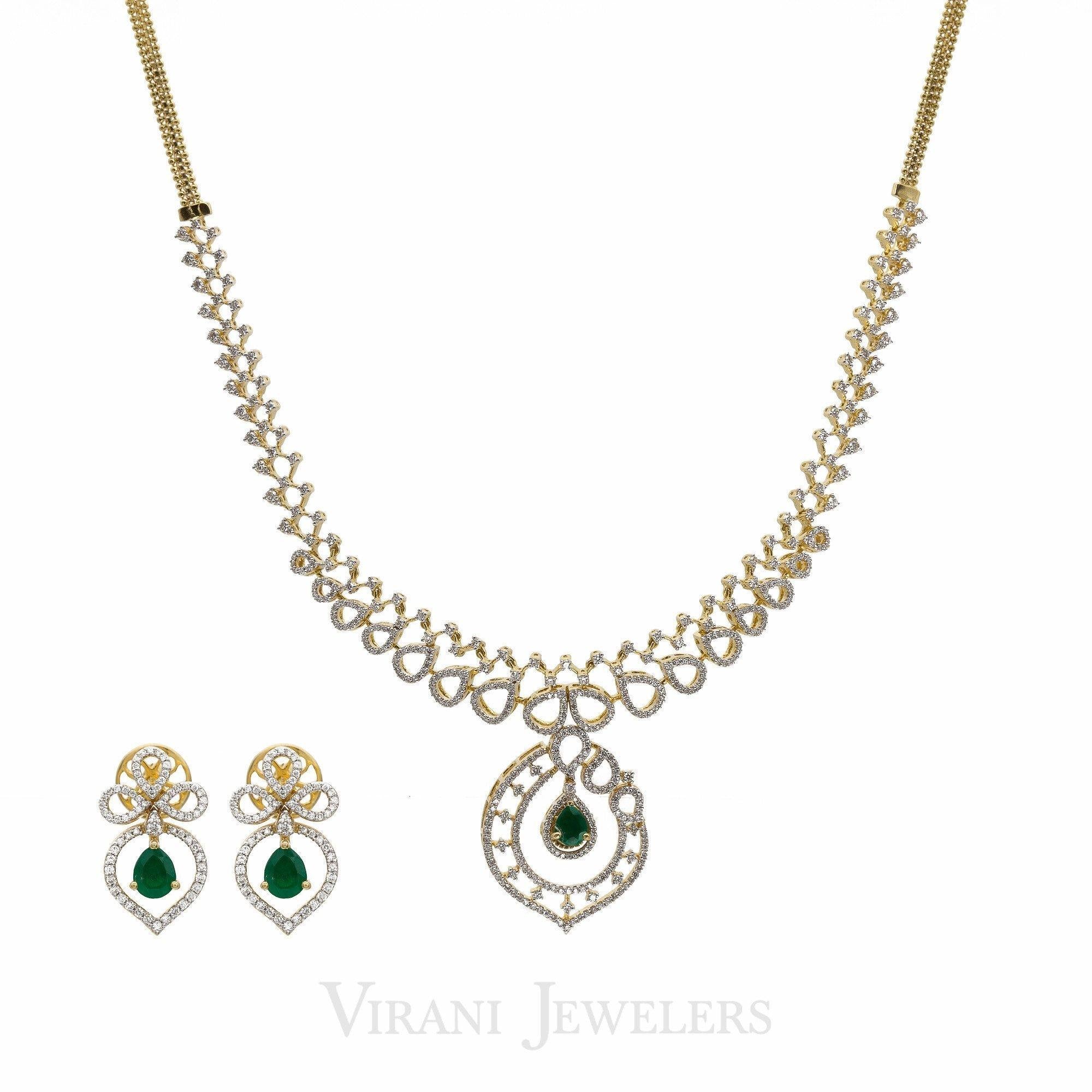 2.15CT Diamond Necklace & Drop Earring Set in 18K Yellow W/Pear Cut Emerald