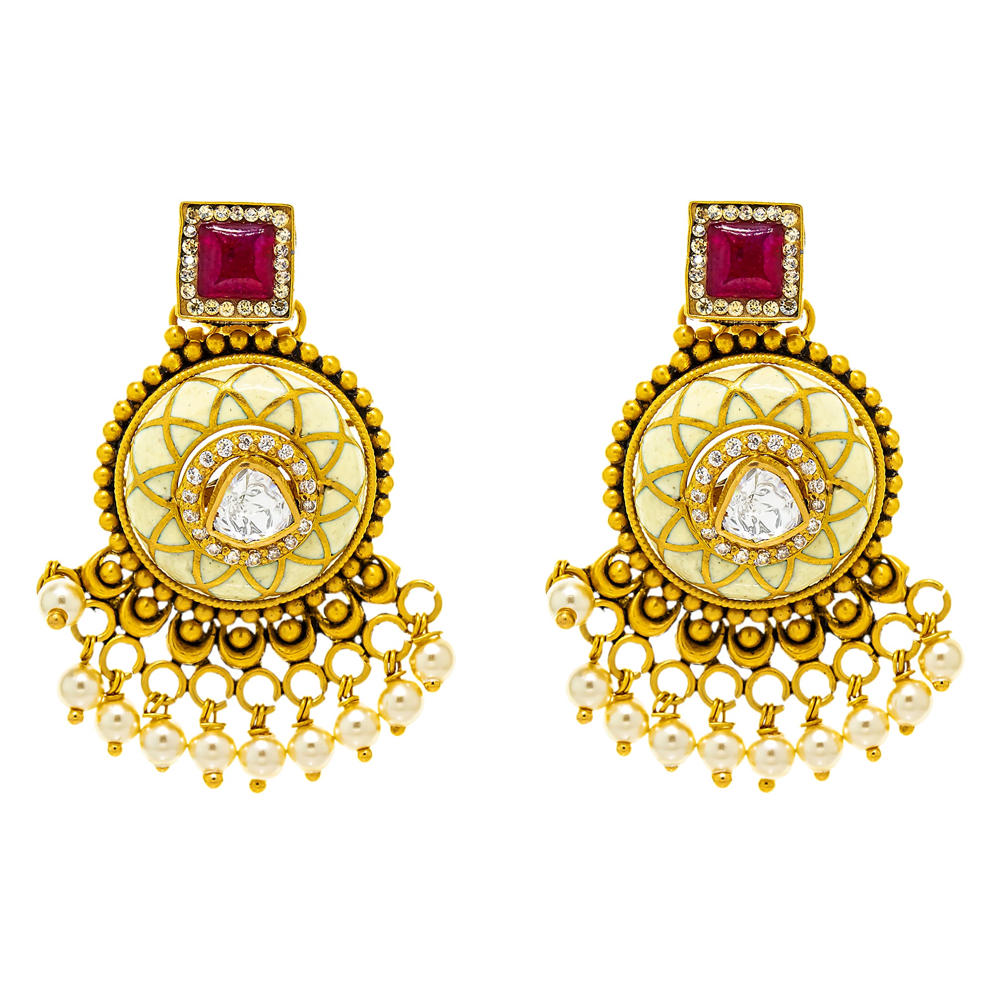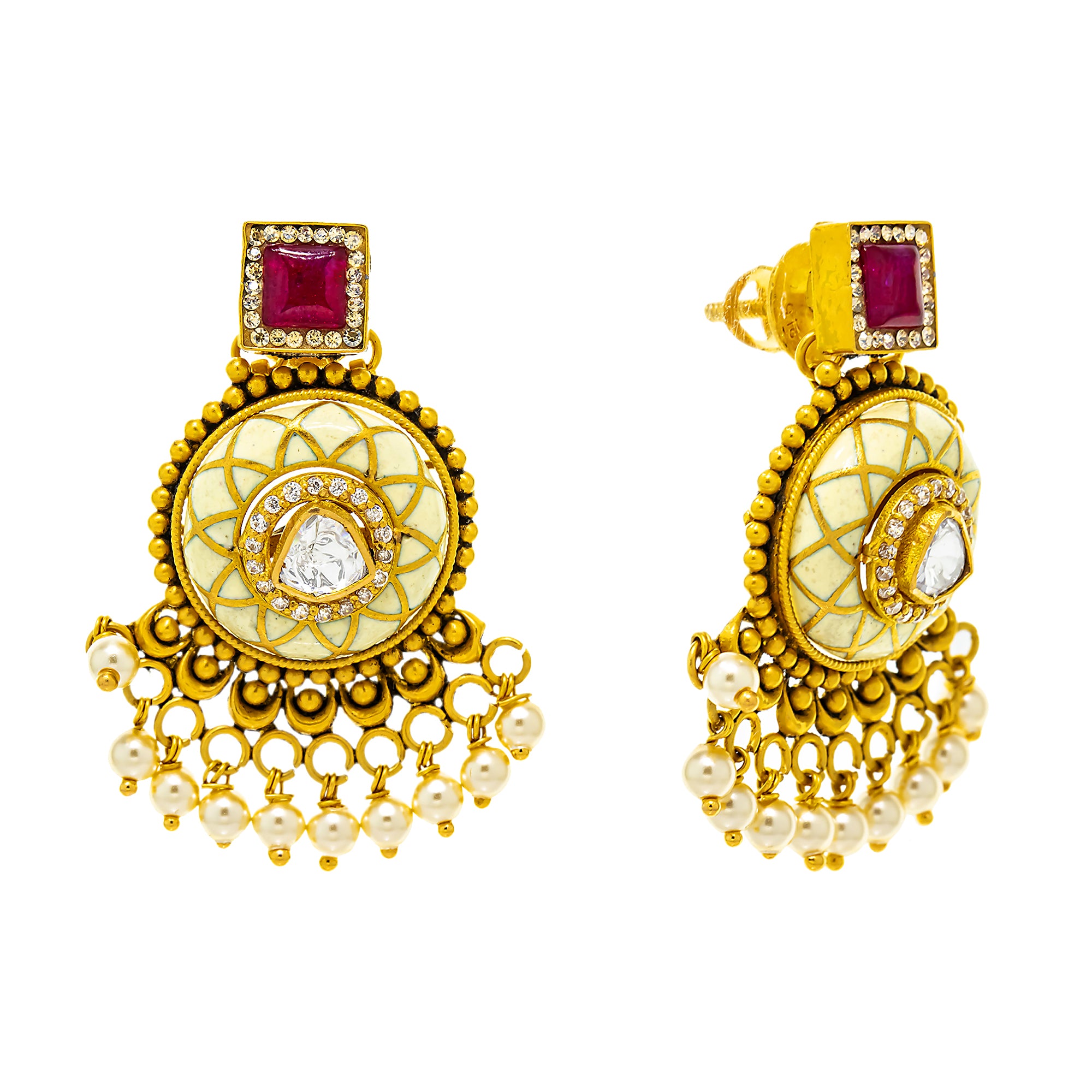 22K Antique Gold & Kundan Necklace & Earring Set (52.8 grams)