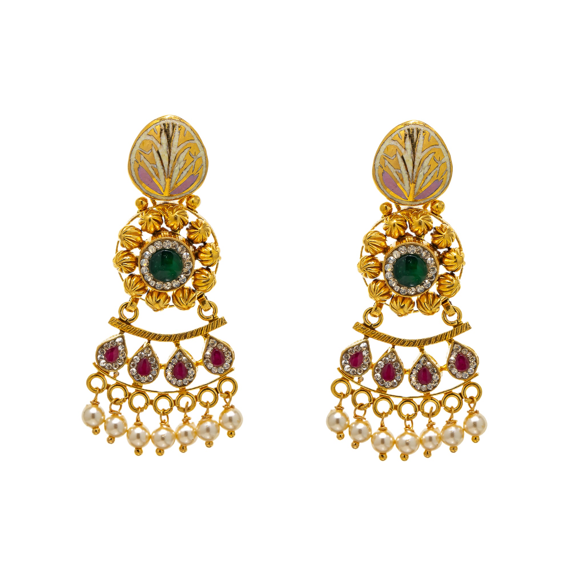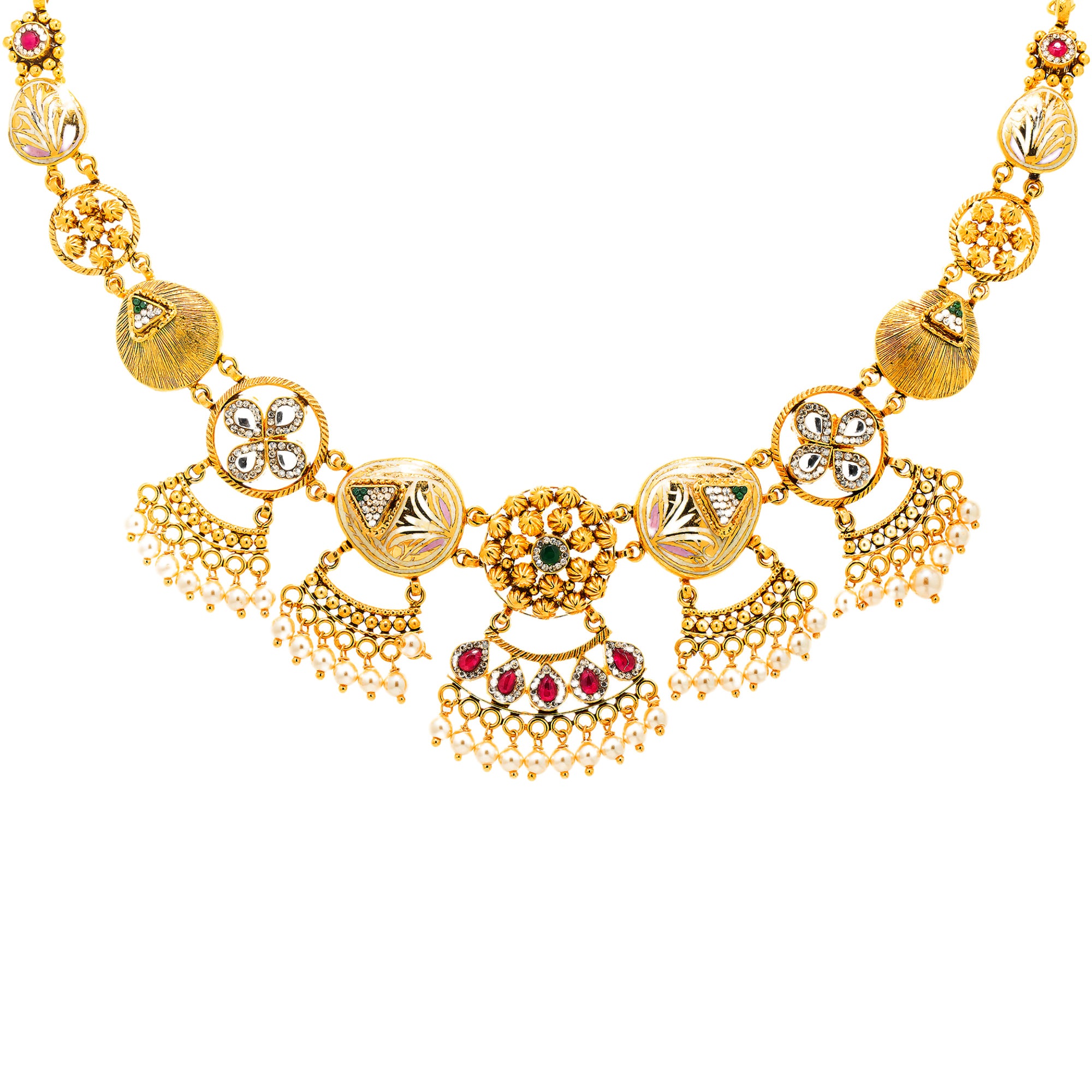 22K Antique Gold & Kundan Necklace Set (48 grams)