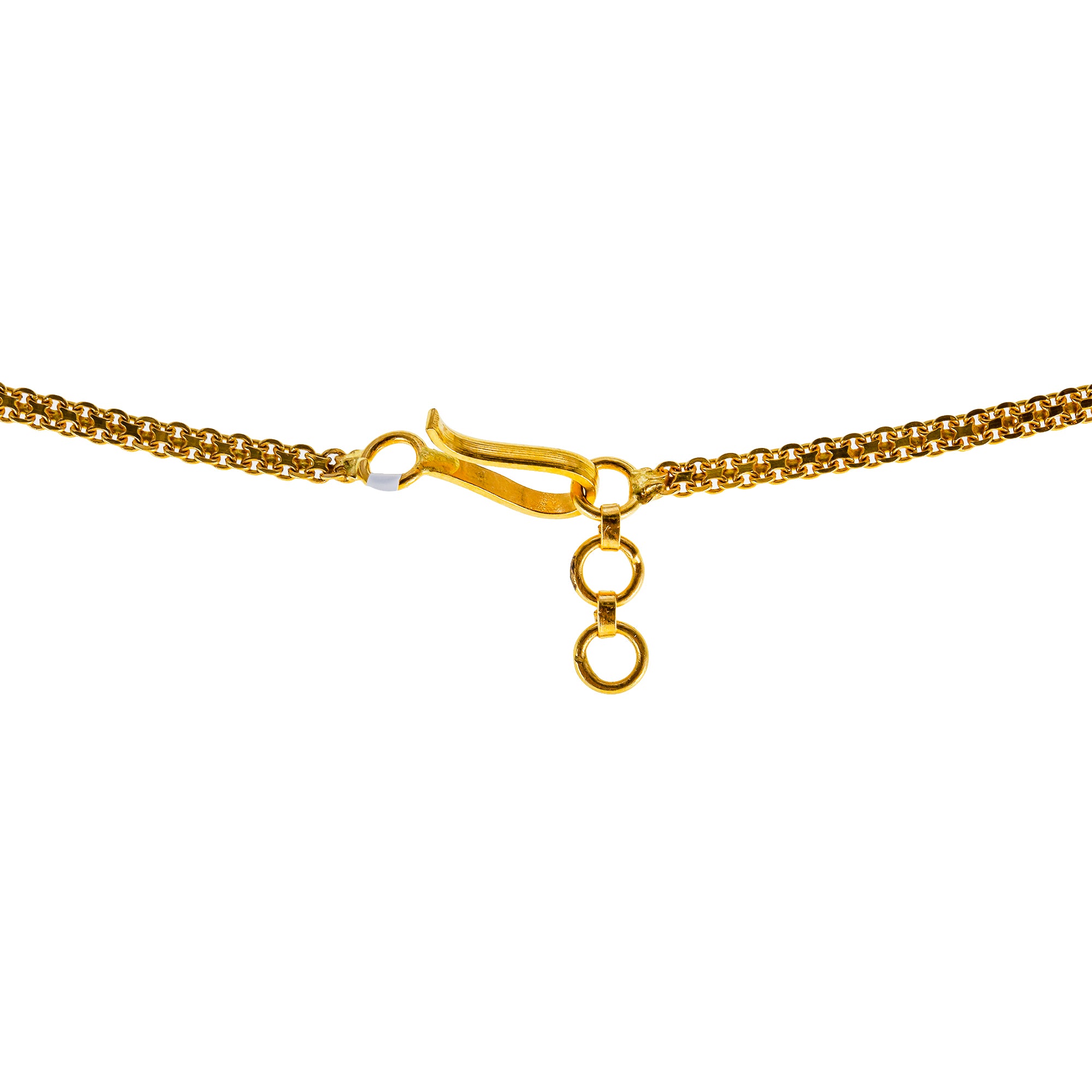 Virani Jewelers presents to you this unique 22k antique gold temple necklace inspired by the grandeur of Indian jewelry.
