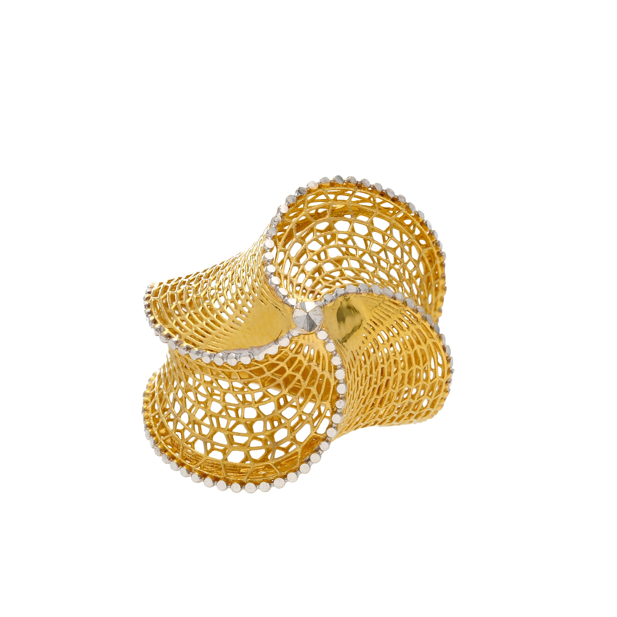 Add a uniquely fashionable ring to complete your look with this 22K Gold Abstract Cocktail Ring. This one of a kind 22k yellow and white gold cocktail ring for women has an ultra feminine design that will flatter any finger.