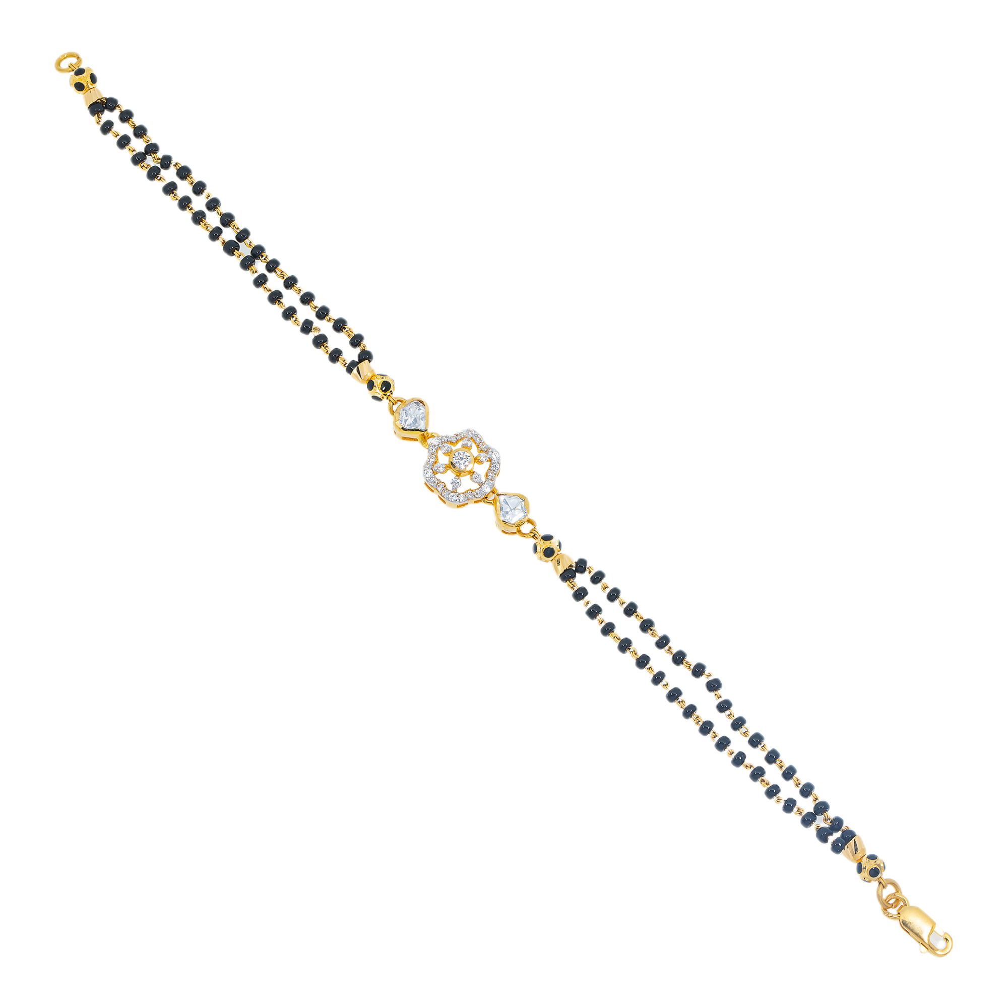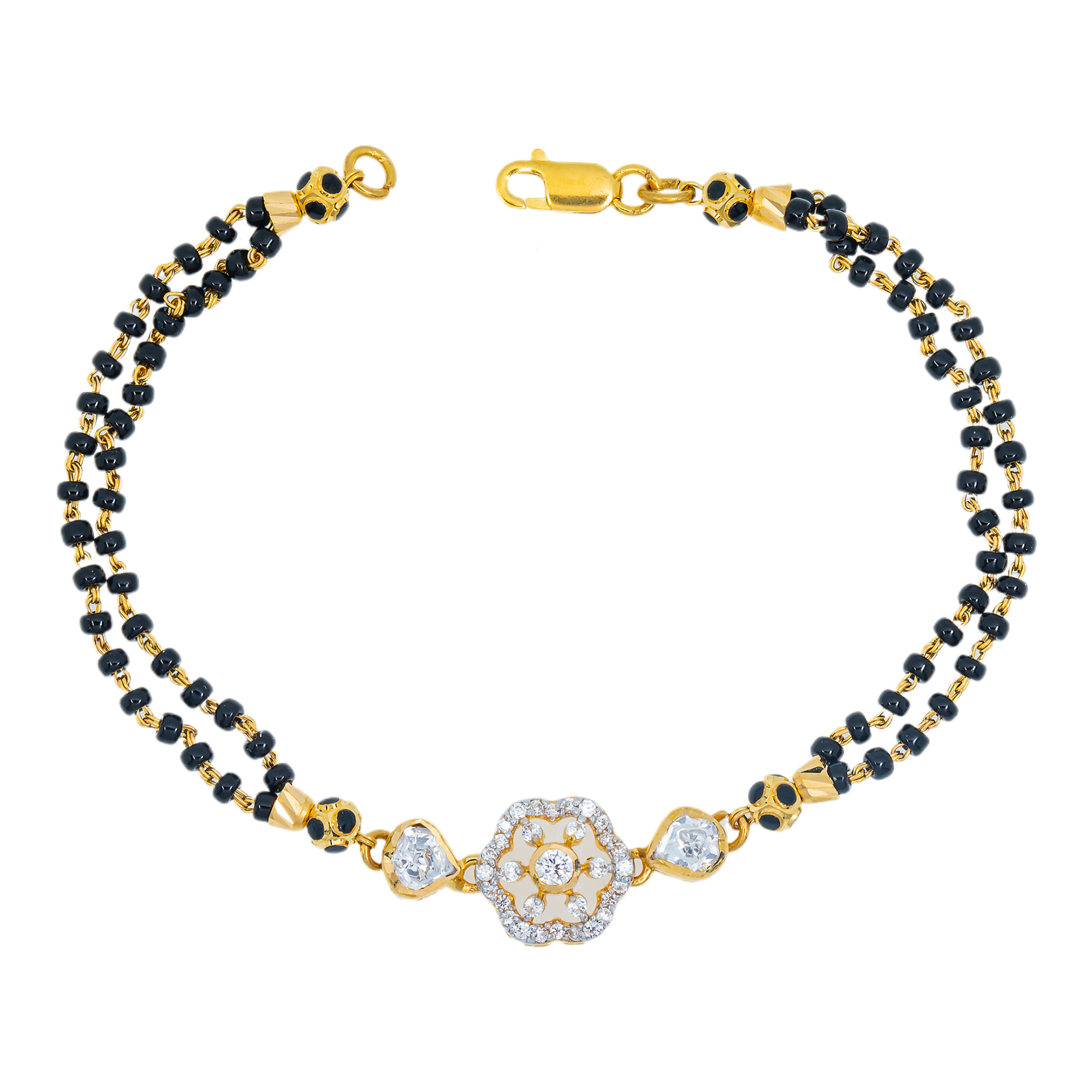 Celebrate the blessings of youth with this stunning 22k gold, cubic zirconia, and  black beaded bracelet for kids by from Virani Jewelers. This piece of fine gold jewelry is more than just an adornment, it is rooted in tradition and protection of a child's essence.