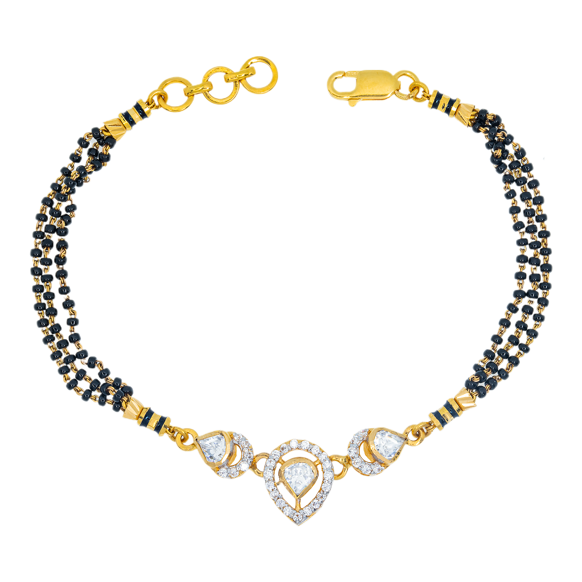 22K Gold, CZ & Black Bead Bracelet (6.5 grams)