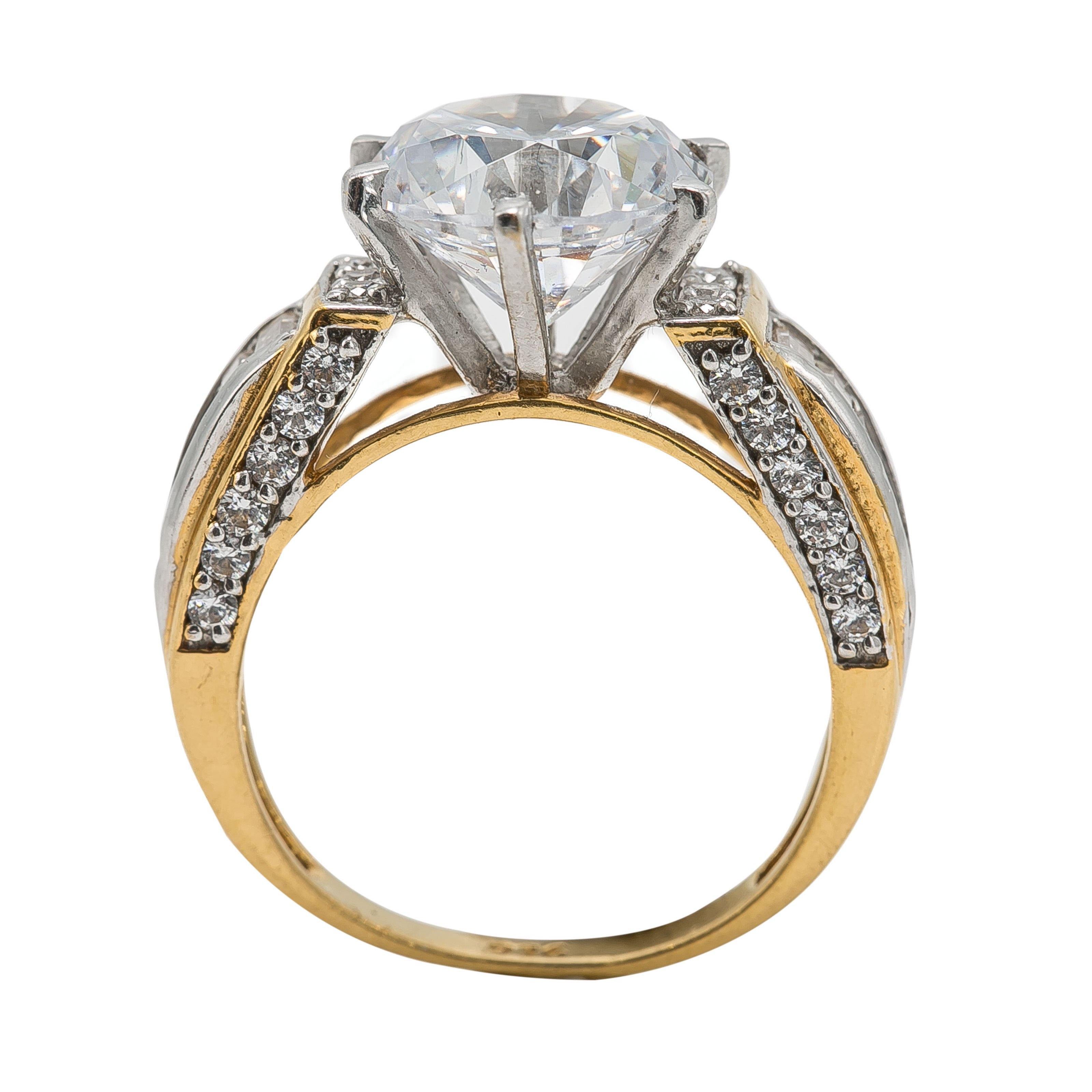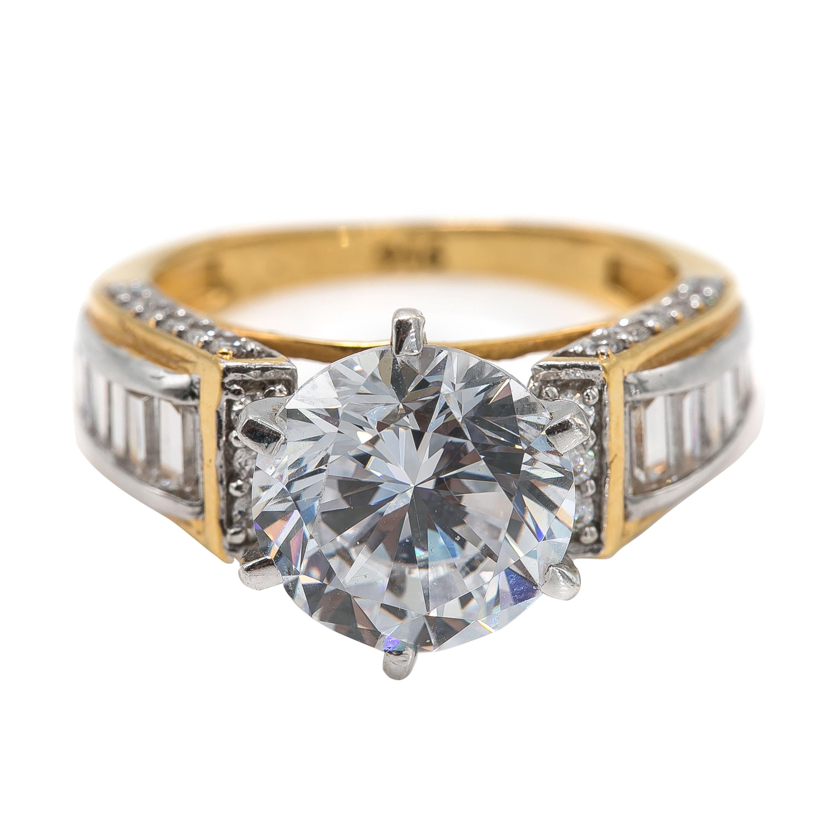 22K Multi Tone Gold Ring W/ Round & Baguette Cut CZ Gems
