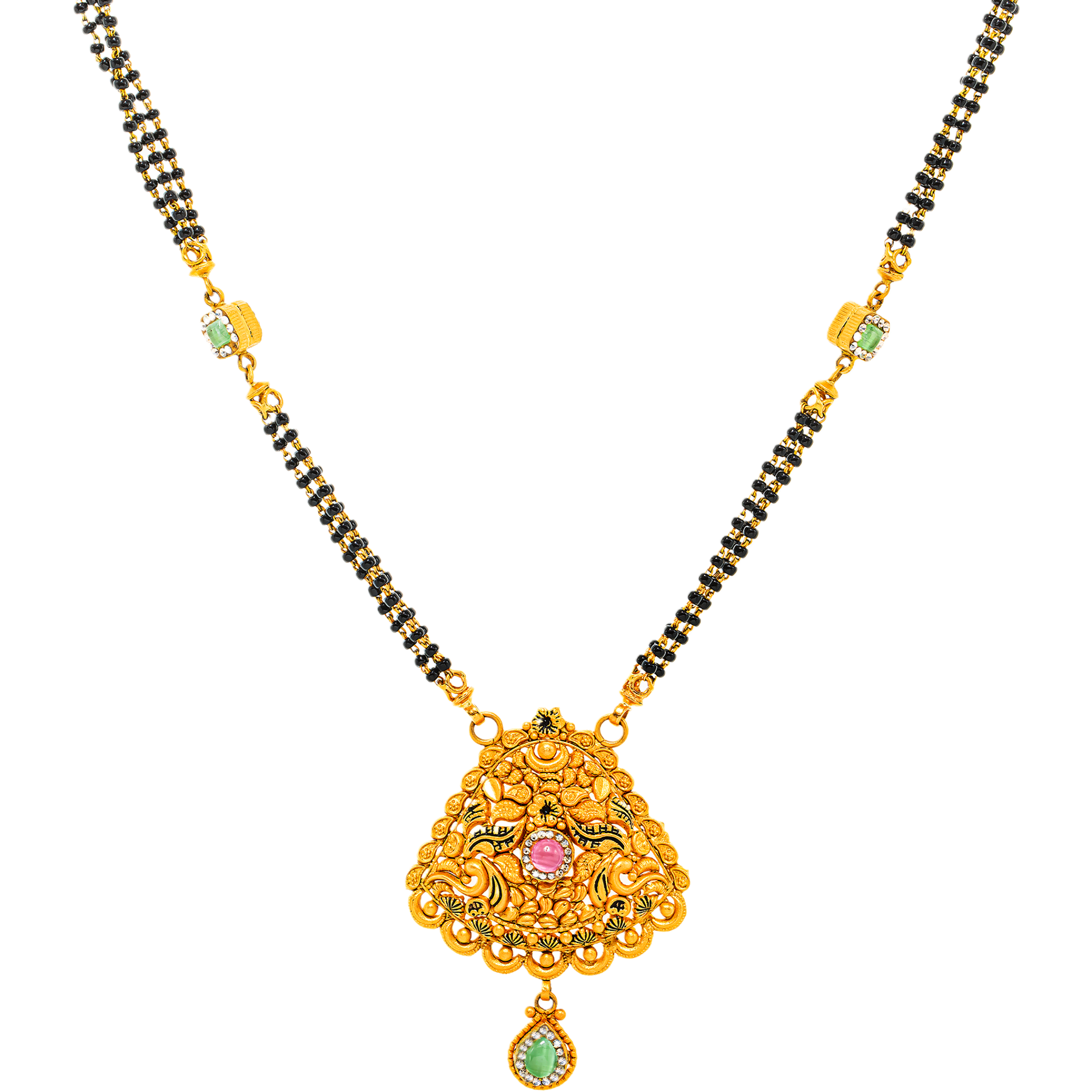 22K Gold, Emerald, Kundan, Ruby & CZ Mangalsutra (17.5 grams)