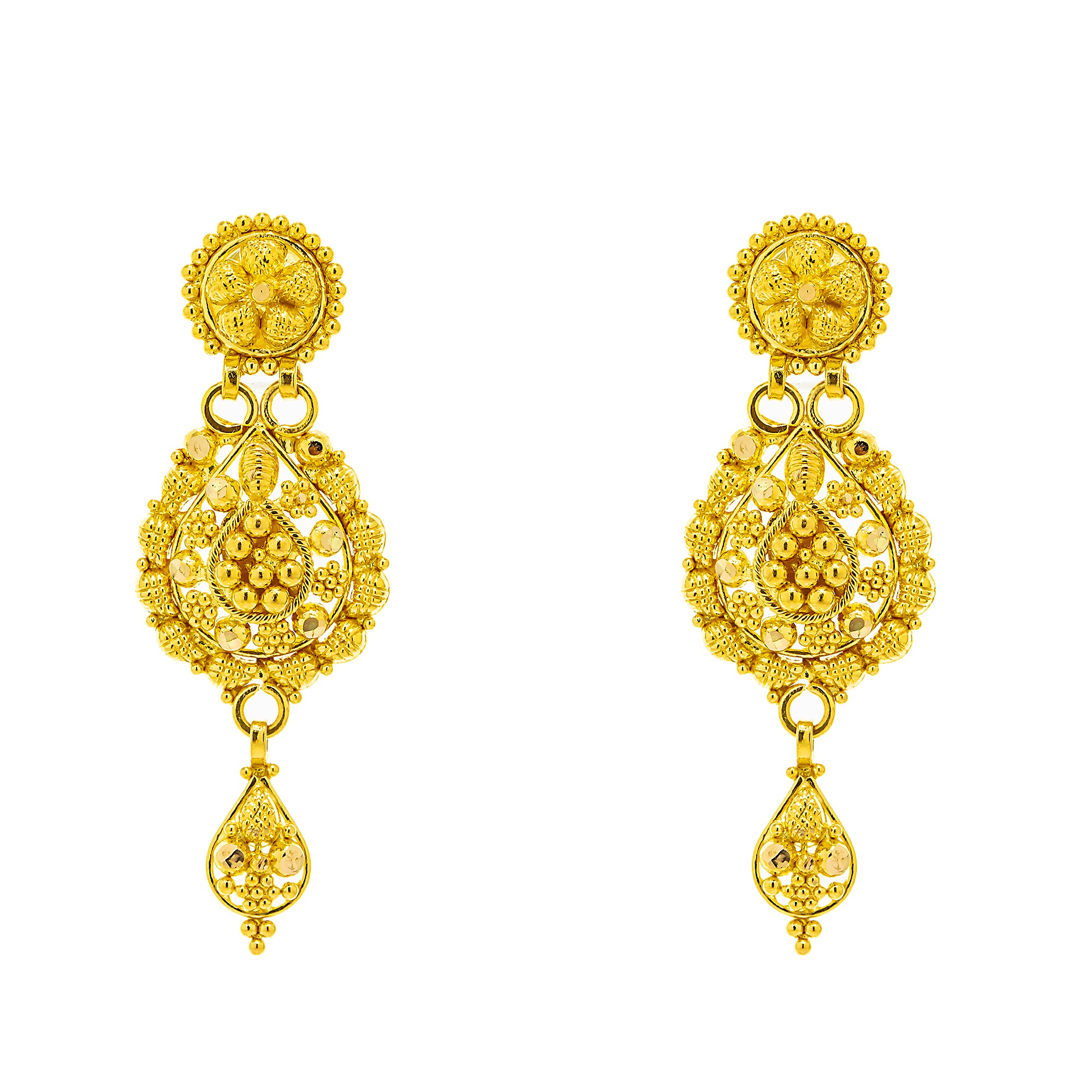 22K Gold Filigree Necklace & Chandbali Set (22.2 grams)