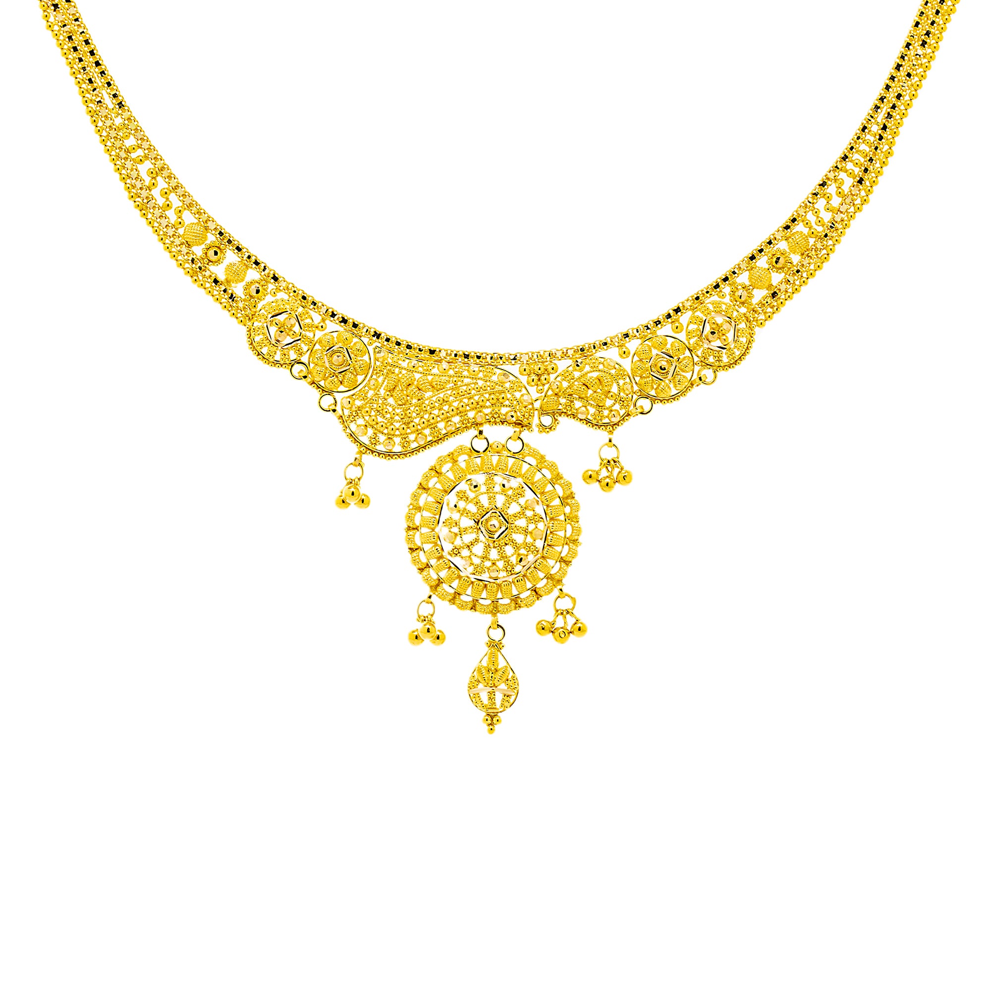 22K Gold Filigree Necklace & Chandbali Set (27.5 grams)