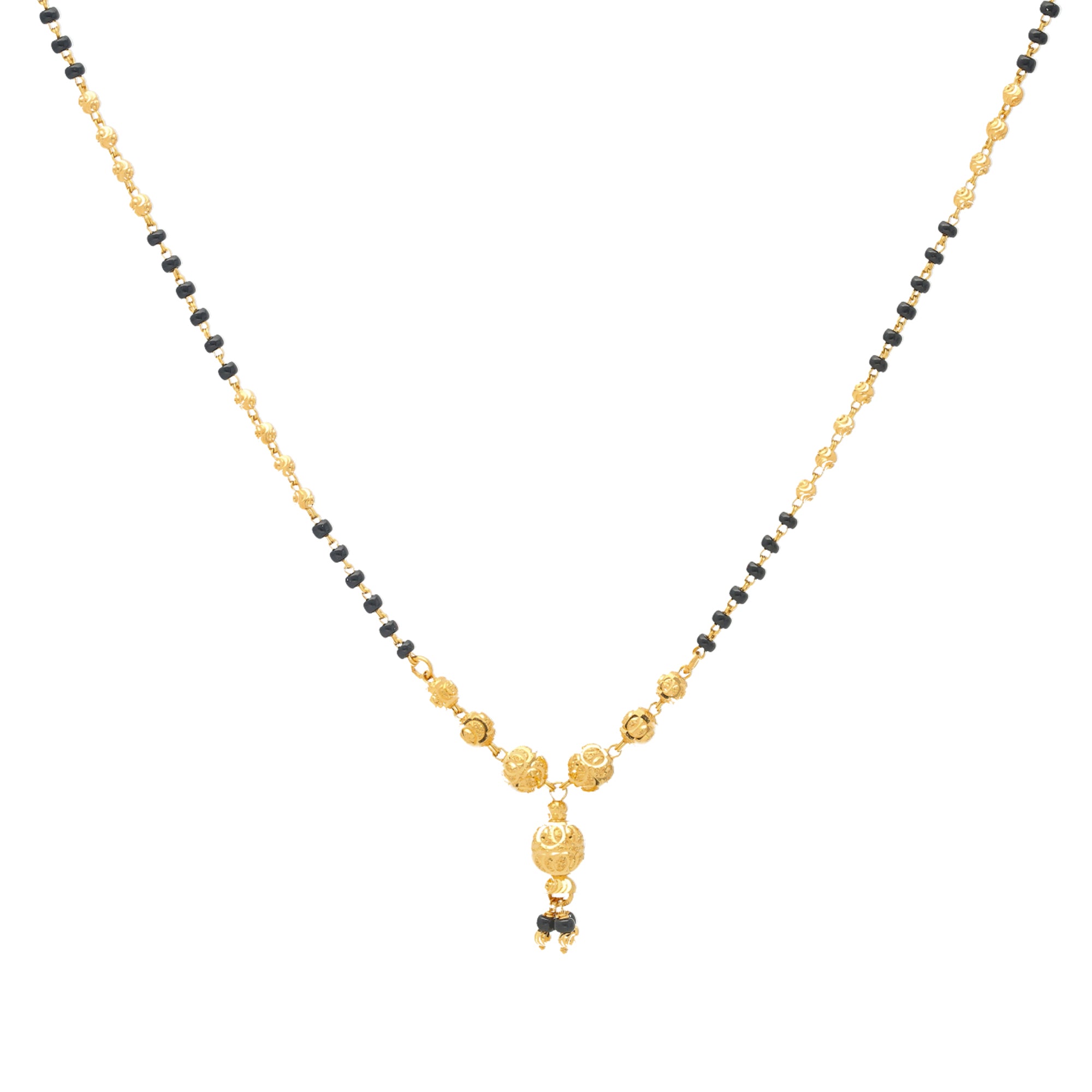 Whether you're getting married or want to dress up your everyday attire with a symbol of your recent nuptials, our 22K gold chain Mangalsutra necklaces are the perfect addition to your wardrobe. The black beads and complementing 22k yellow gold make these pieces elegantly subtle and easy to pair with all your favorite ensembles. Explore our website to discover more stunning 22K gold chain necklaces and more!