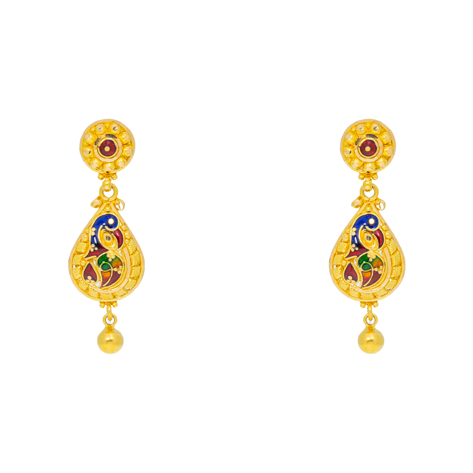 22K Gold Meenakari Peacock Earrings (7.5 grams)
