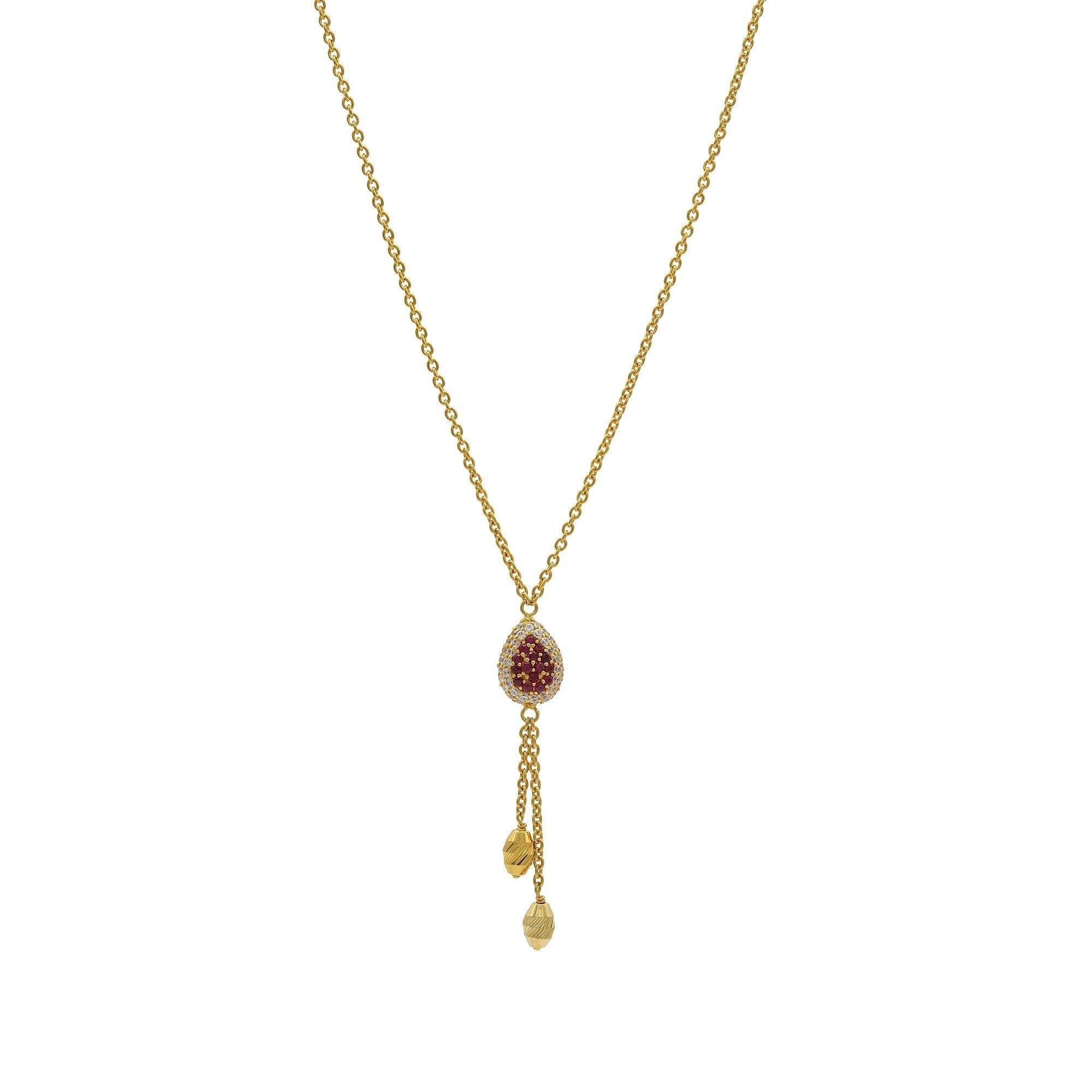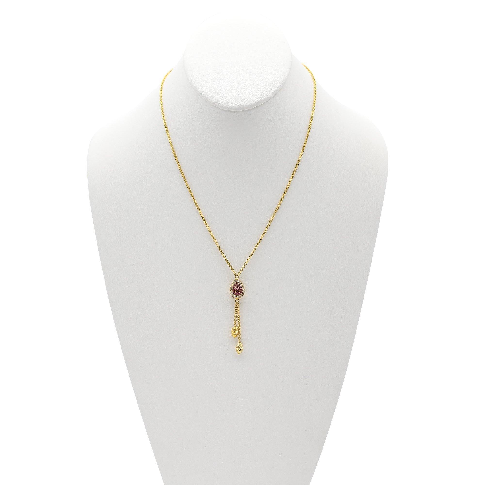 22K Gold Necklace W/Teardrop Ruby & CZ Pendant