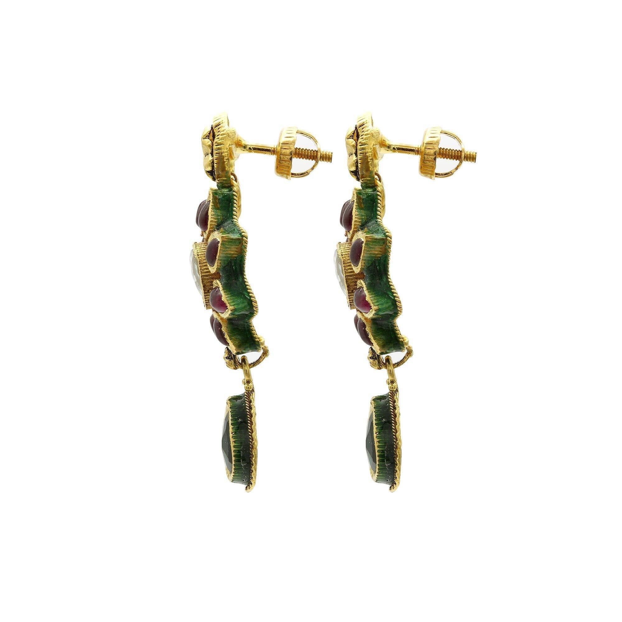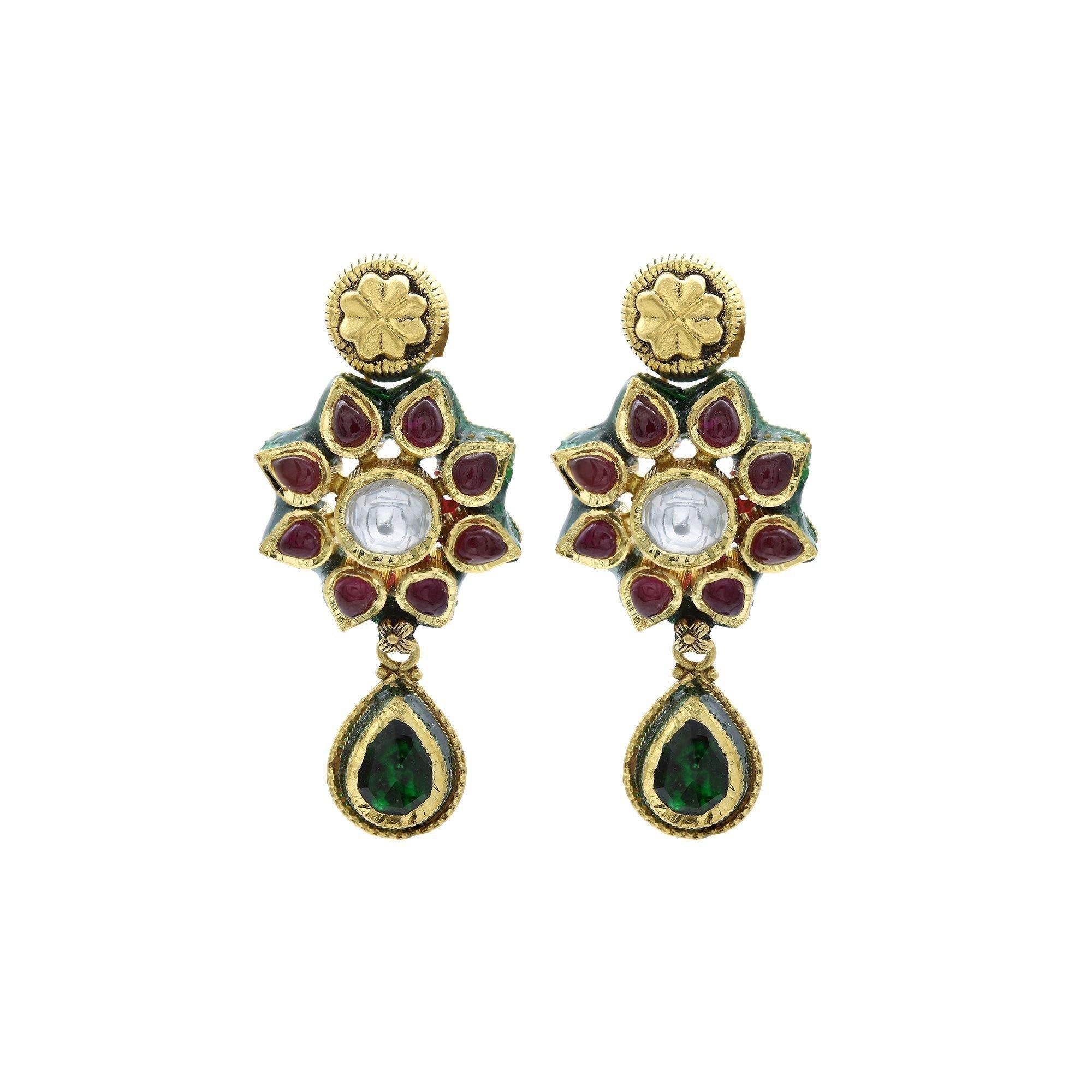 22K Gold Ruby Emerald Kundan Floral Necklace & Earrings Set