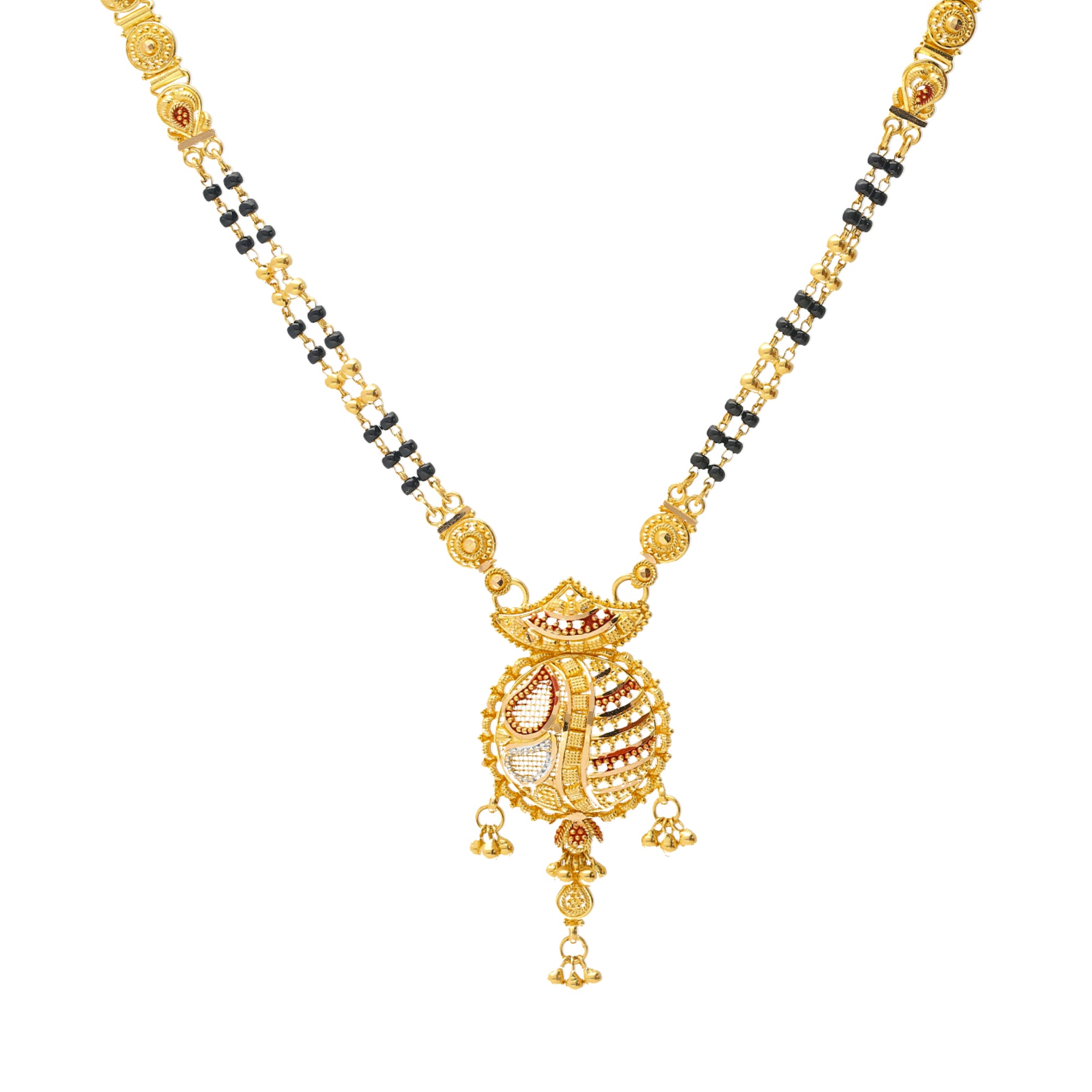 Let this radiant 22k yellow gold mangalsutra necklace be a daily symbol of your love and matrimony.