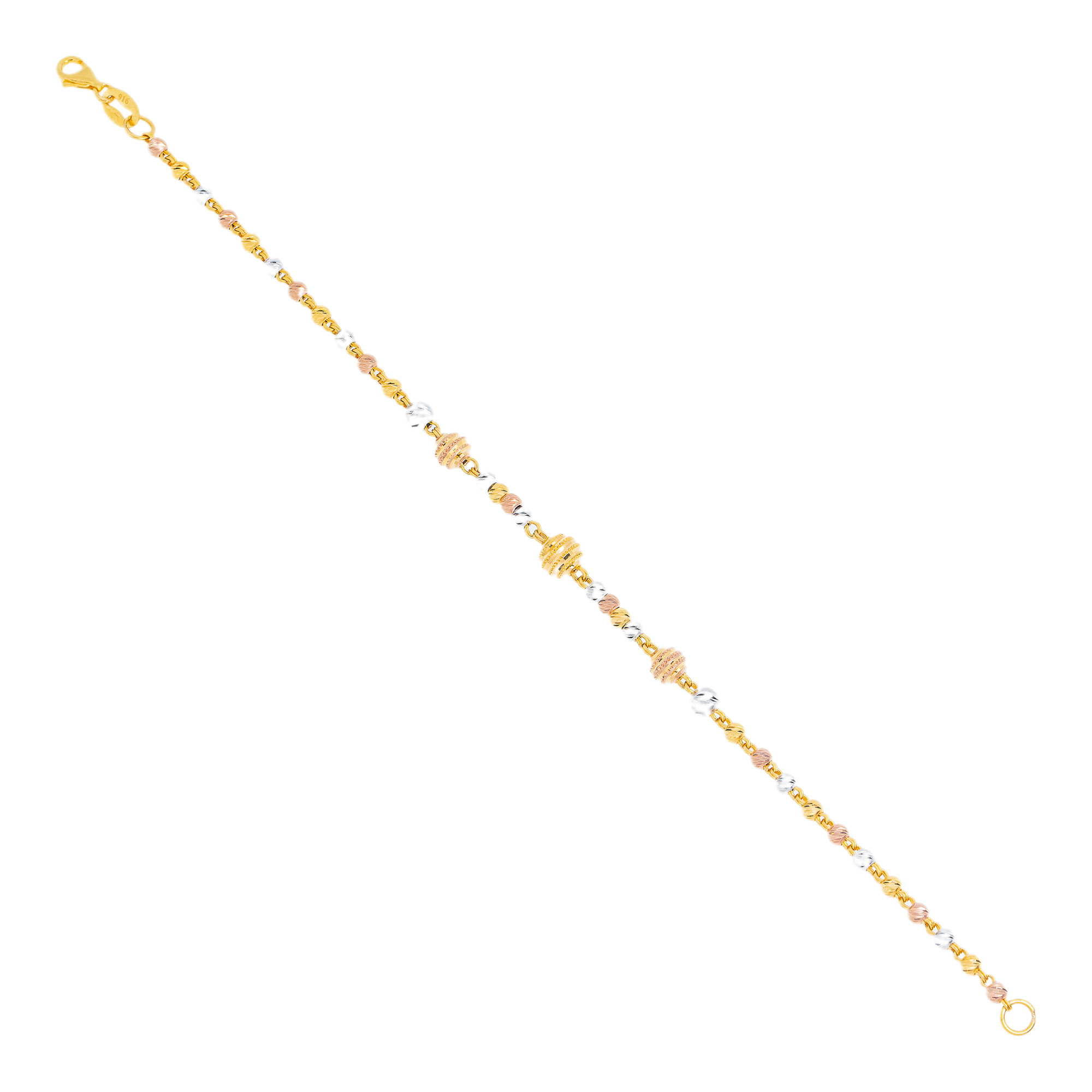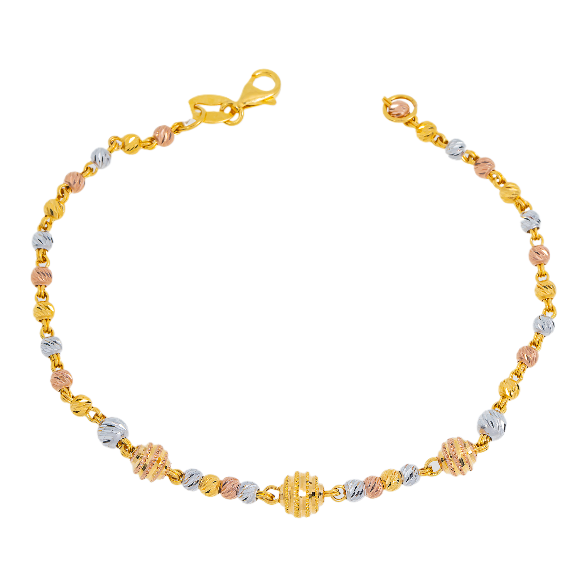 22K Multi-Tone Gold Beaded Bracelet (6.8 grams)