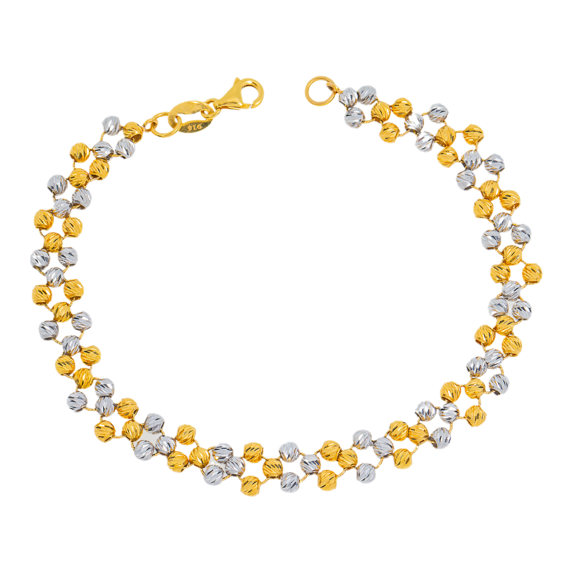 22K Multi-Tone Gold Beaded Bracelet (9.4 grams)