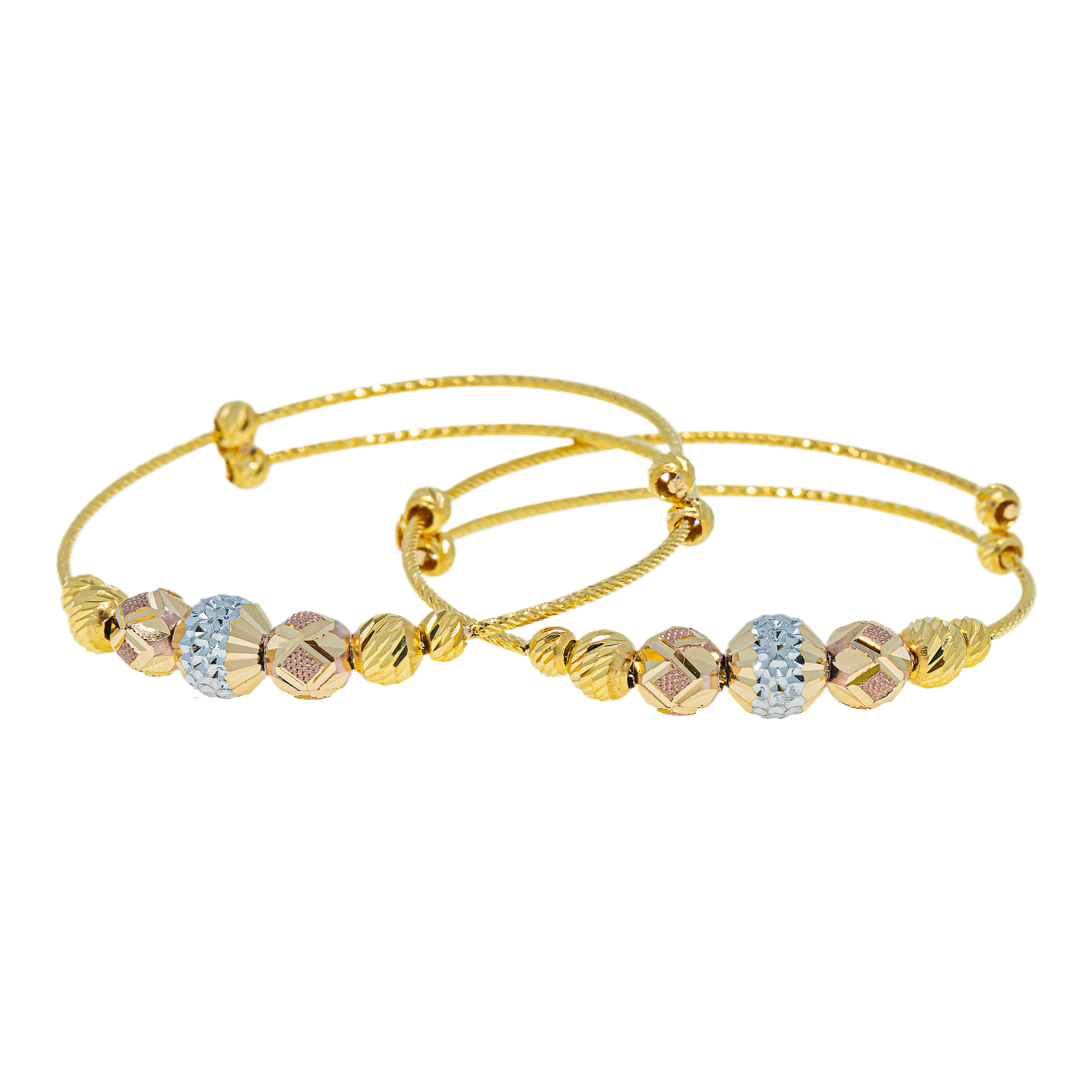 22K Multi-Tone Gold Beaded Kid's Bangle Set (7.3gm)