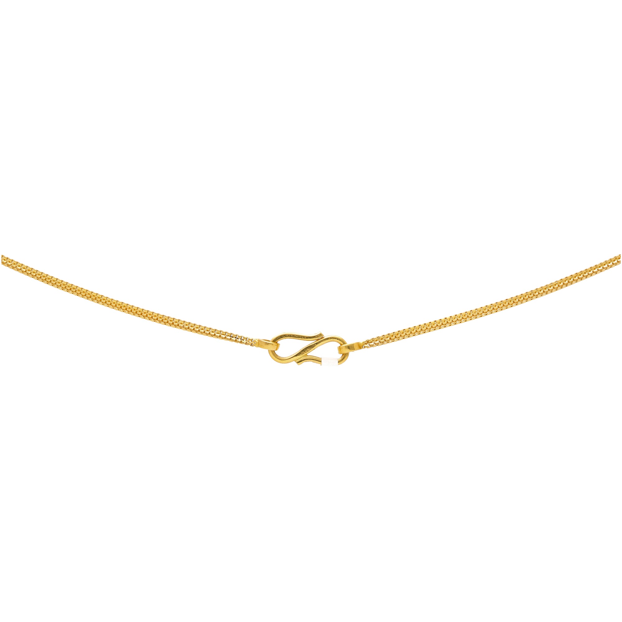 Radiant and luxurious, this 22k gold Mangalsutra necklace has a simple design and style that is timeless and elegant. The vibrant cubic zirconia and black beads create an exquisite contrast that adds sophistication to the minimal design. This traditional piece of gold Indian jewelry highlights love, commitment, and unity in the form of 22k gold.
