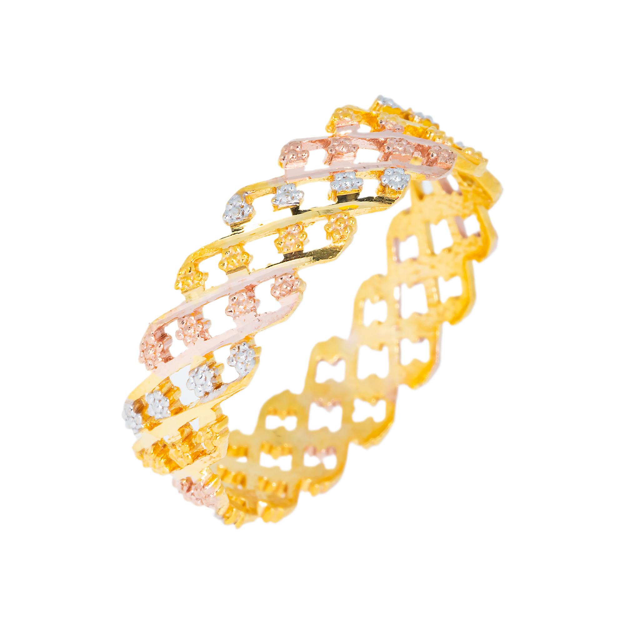 Crafted 22k multi-tone gold, this elegant ring for women by Virani Jewelers highlights intricate texture and luminous tones in fine gold jewelry perfection.