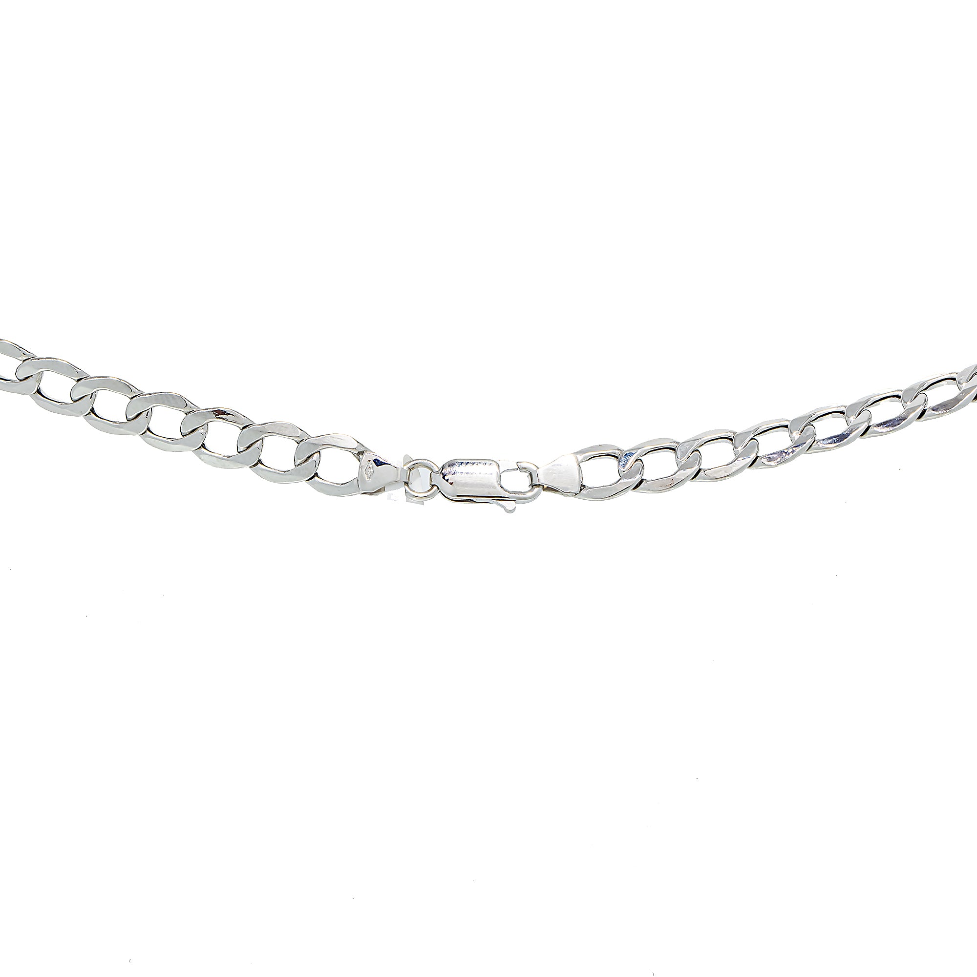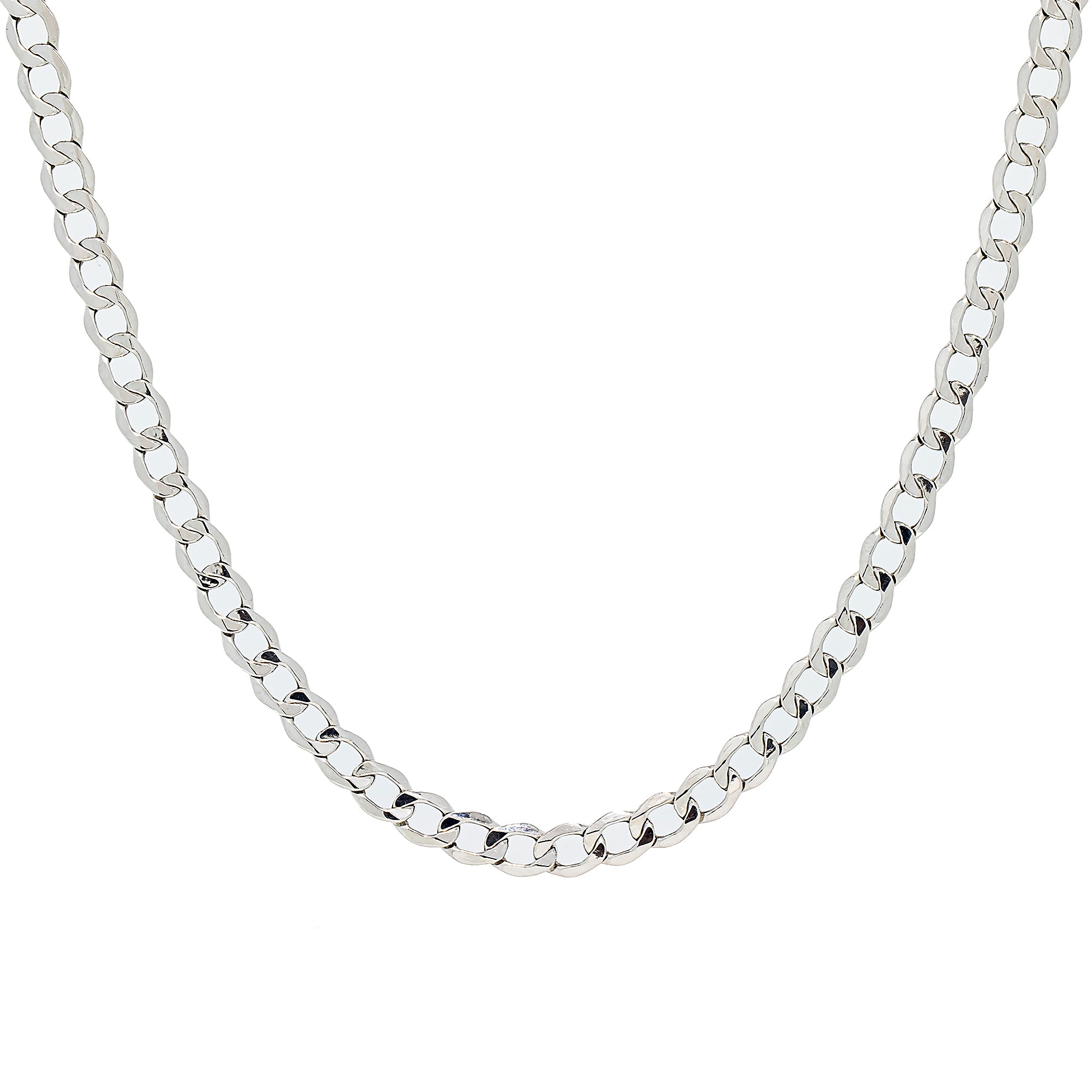 | Add depth and brilliance to your collection with this 22k white gold chain by Virani Jewelers. Designed for the classic man with a discerning taste, this white gold Cuban chain combines multiple gold tones for a bold yet elegant look. Lightweight and versatile, this gold chain transitions seamlessly from day to evening, making it an essential piece of fine gold jewelry. Features • 22K white gold Specifications • Minimum Width - 6.5 millimeters • Maximum Width - 20 millimeters • Length - 20 inches • Weight - 13.1grams |