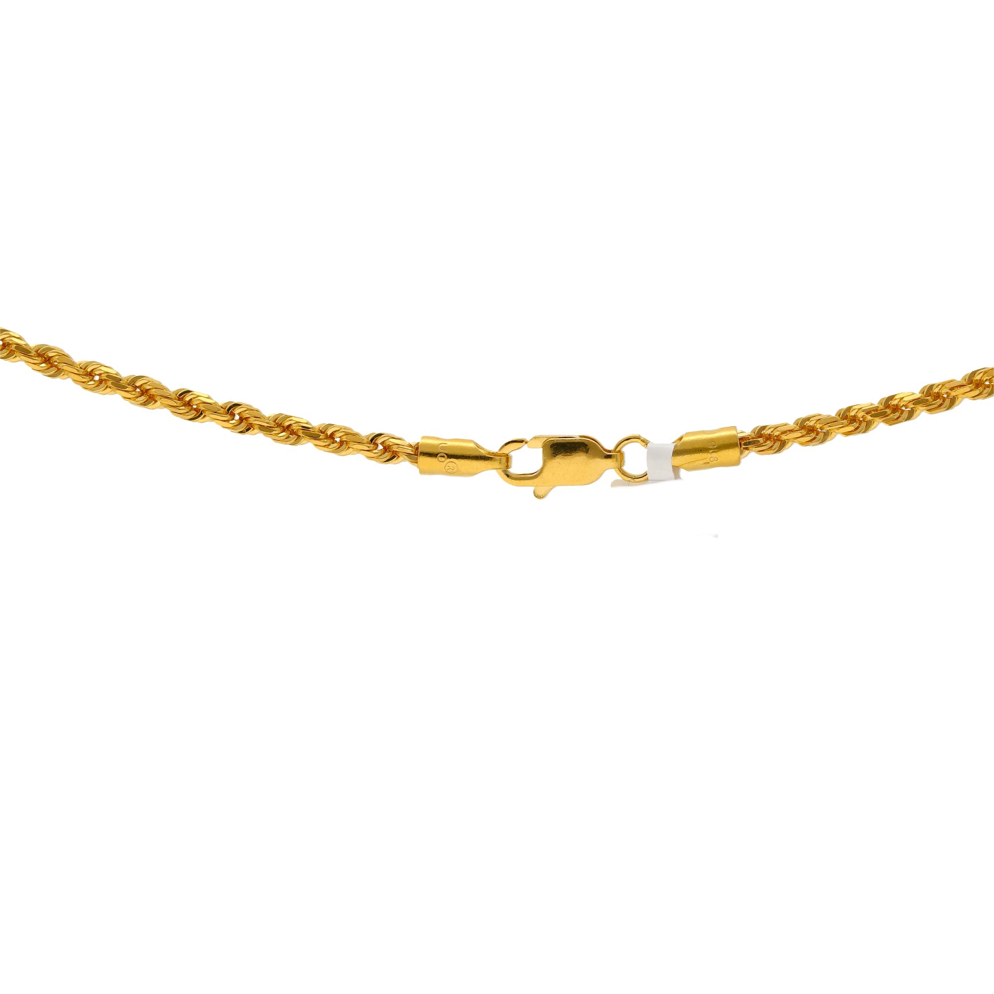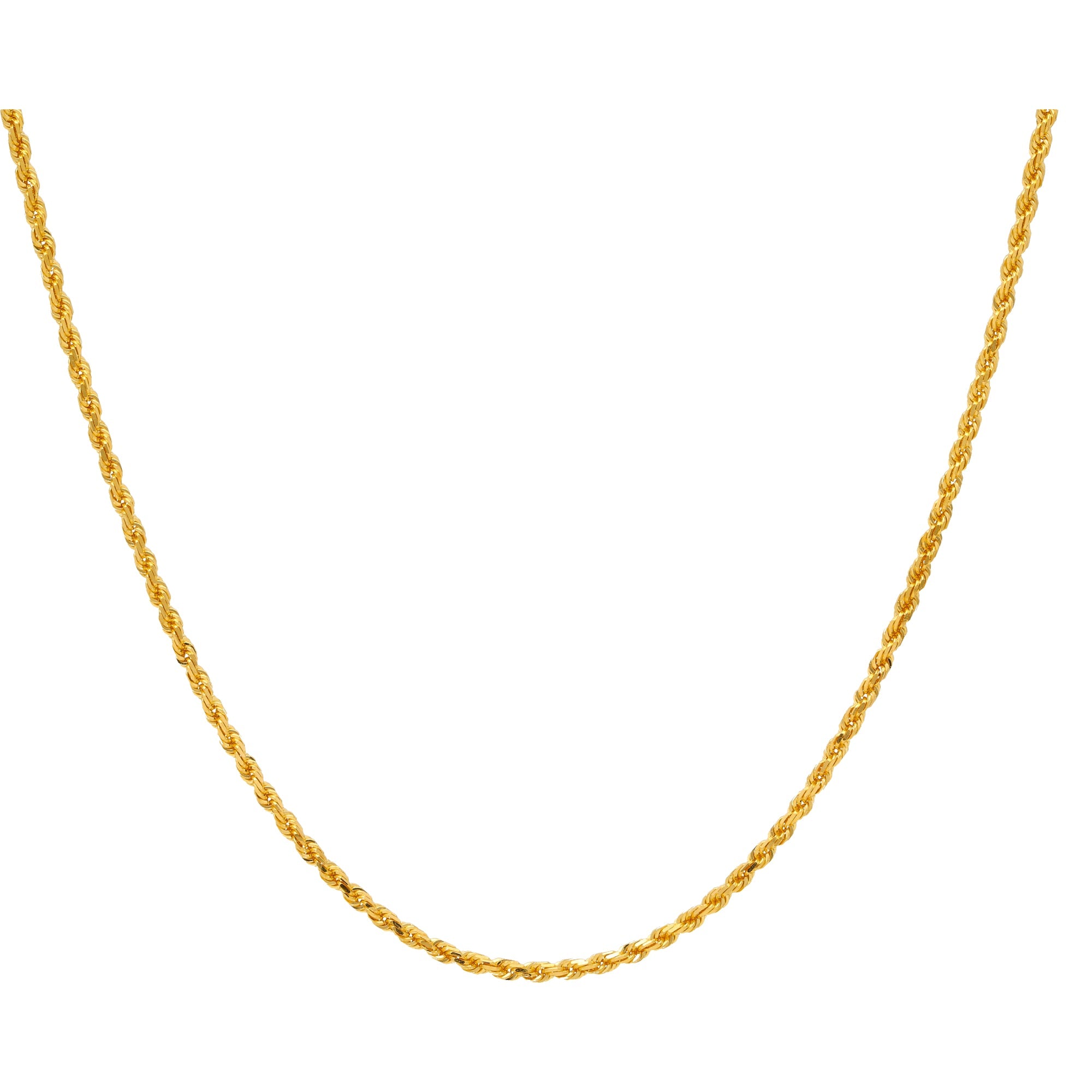 Wear this classic 22k yellow gold solid rope chain by itself or paired with your favorite Indian gold pendant from Virani.