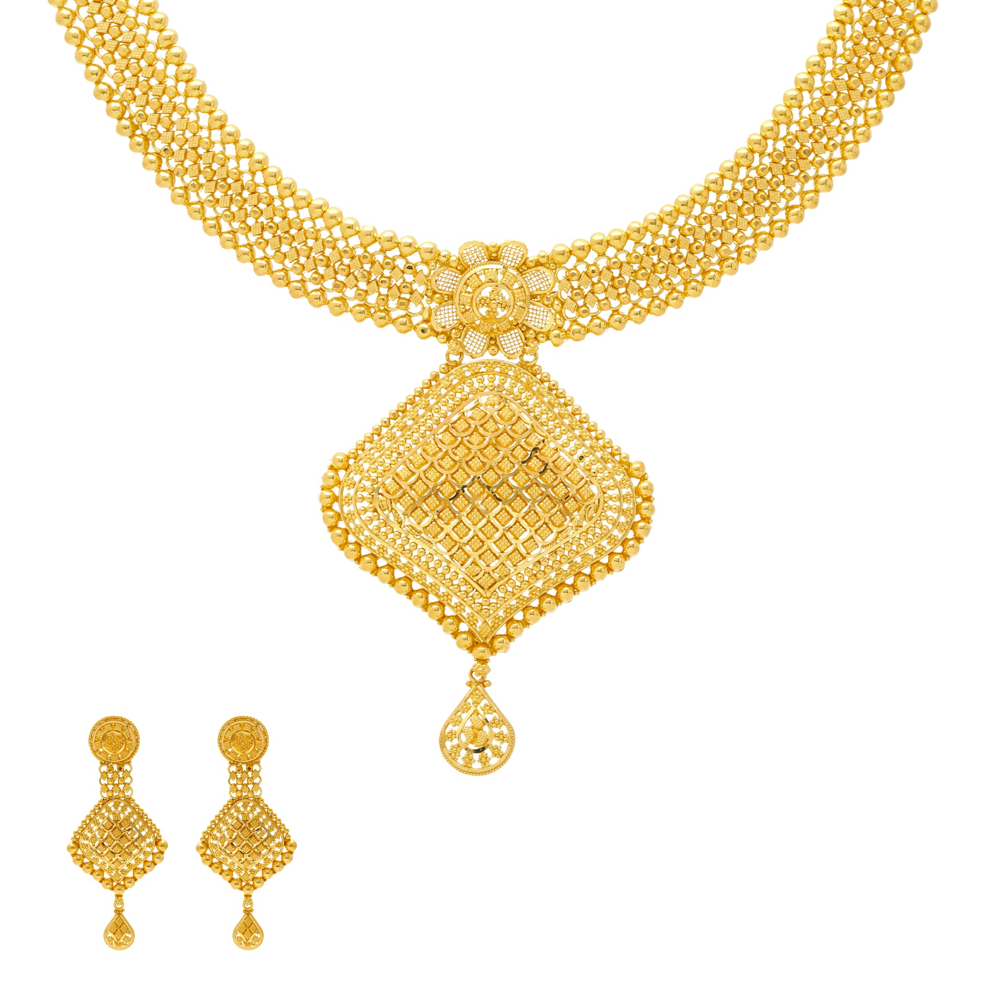 Pair this stunning 22k yellow gold jewelry set with your favorite looks to show off your cultural pride.