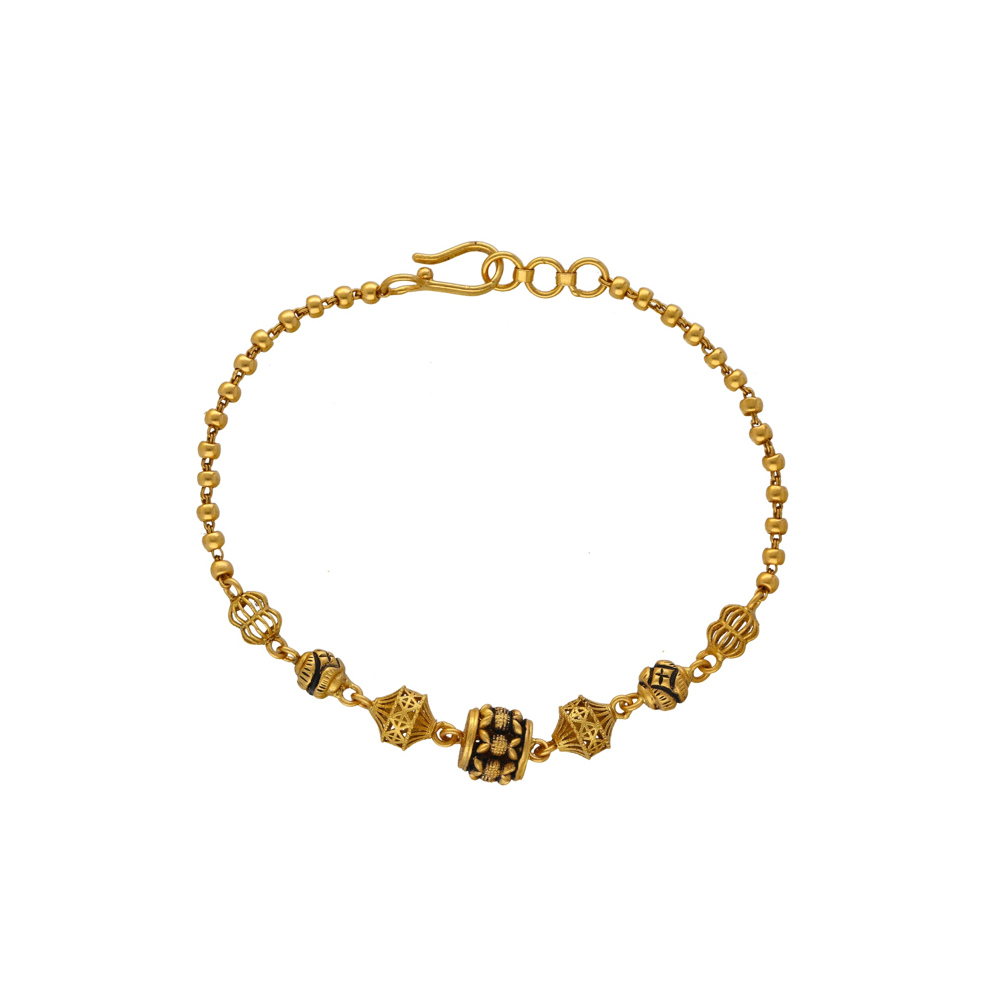 Our 22K Yellow Gold Artisan Beaded Bracelet has a unique design and style that brings a one of a kind sense of luxury to this minimal 22k Indian gold bracelet.