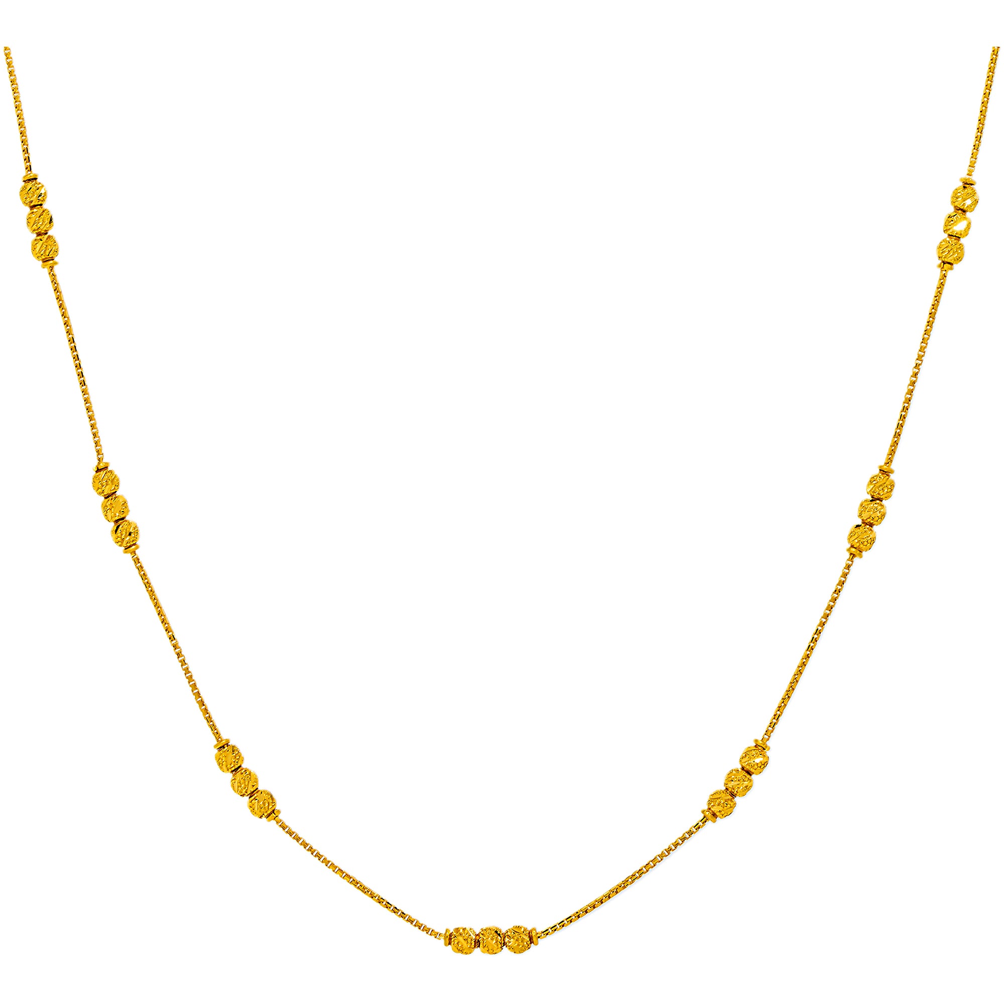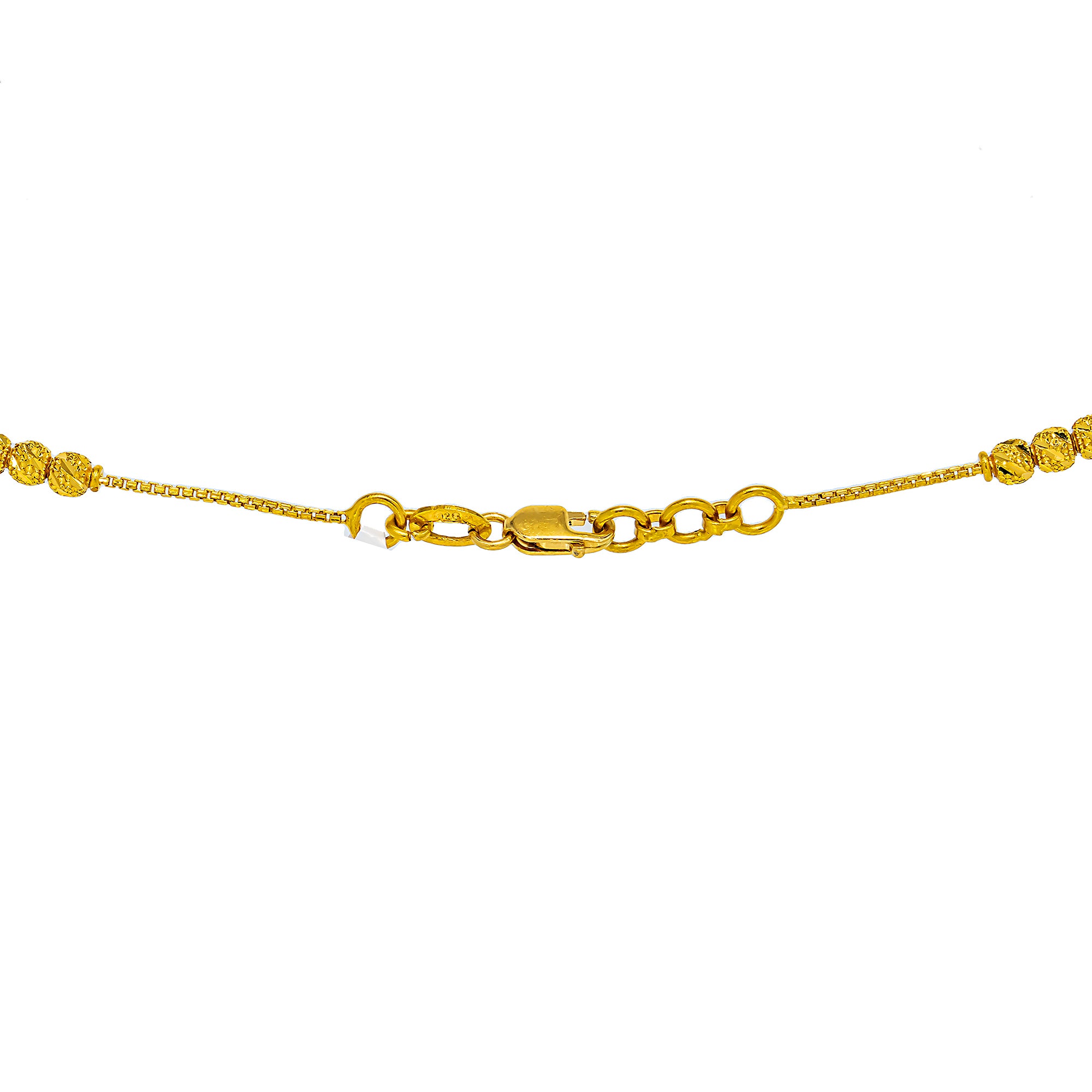 | Discover elevated elegance with this 22K yellow gold chain by Virani Jewelers. Designed for a wide variety of occasions, this beaded gold chain features a unique interplay of tones and texture that enhances its visual appeal. Perfect for daily wear or statement styling, this 22k gold chain for women adds dimension, versatility, and refined sophistication to your fine gold jewelry collection. Features • 22K yellow gold Specifications • Minimum Width - 1 millimeter • Maximum Width - 3.5 millimeters • Length - 22 inches • Weight - 14 grams |