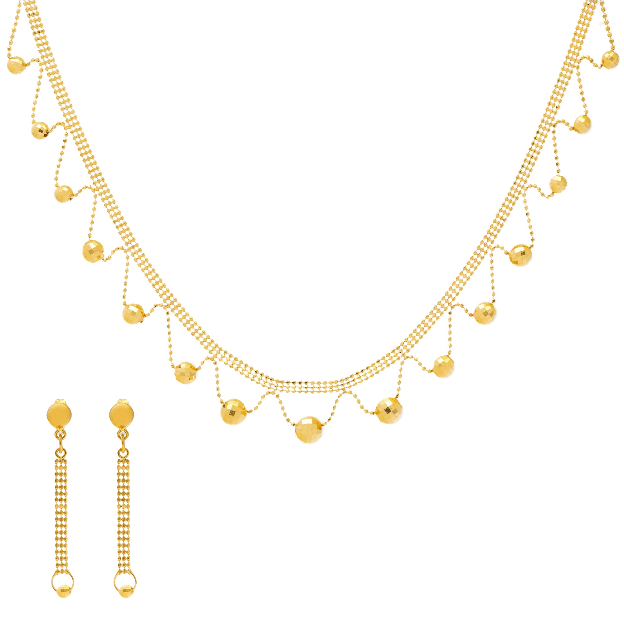 Wear this dainty and delicate 22k yellow gold necklace and earring set whenever you want to add a simple layer of golden beads to your look.