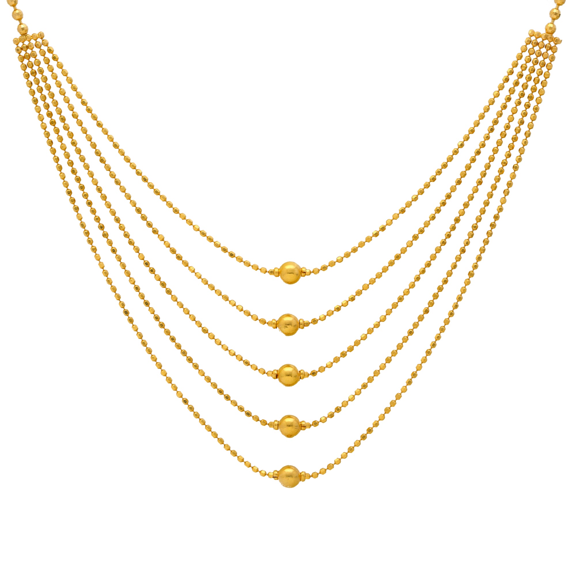 The sophisticated layers of beading used to design the 22k Indian gold necklace and earrings of this stunning jewelry set will add a touch of class to any gown you pair it with.